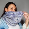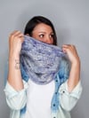 ‘Stop, Drop & Roll’ is a big eye-catching cowl with a unique, airy texture created with the assistance of some dropped stitches and slipped stitches. A folded edge on both ends perfects the look.