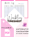 Work Log Template| Activity Report Sheet | Time Log Fillable PDF Download | Automatic Computation of hours worked