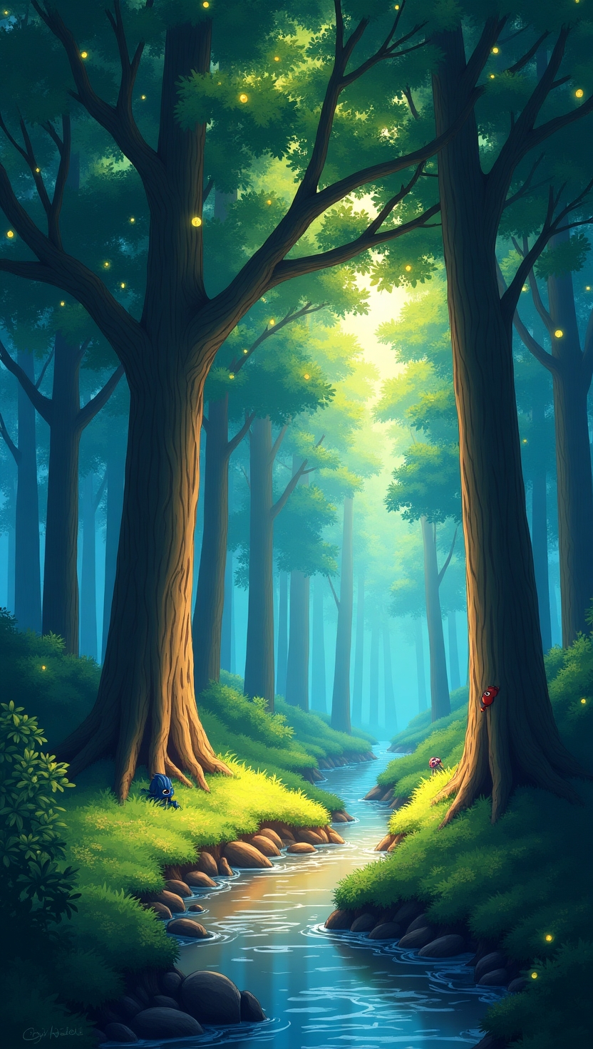 - Anime Art Style: Inspired by popular anime aesthetics, the artwork features soft gradients, detailed backgrounds, and atmospheric effects such as mist, glowing particles, and ethereal lighting.