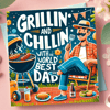 Show your appreciation with this heartwarming Father's Day card featuring adorable characters! The pun 'Chillin' & Grillin' with the world's best dad' adds a delightful touch to this wholesome greeting.
