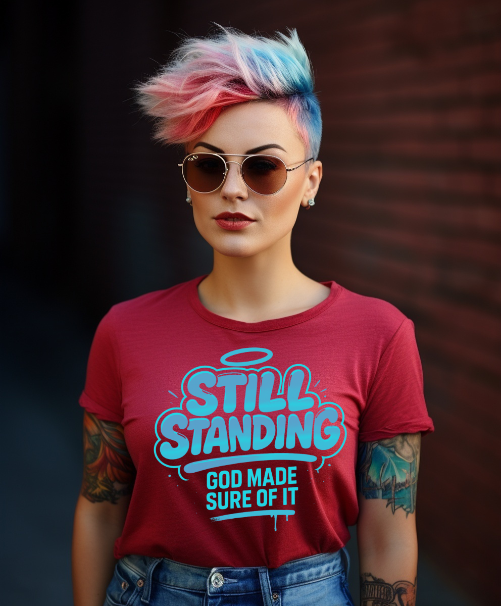 Keep the faith front and center with this bold graffiti-style digital tee design that reads: