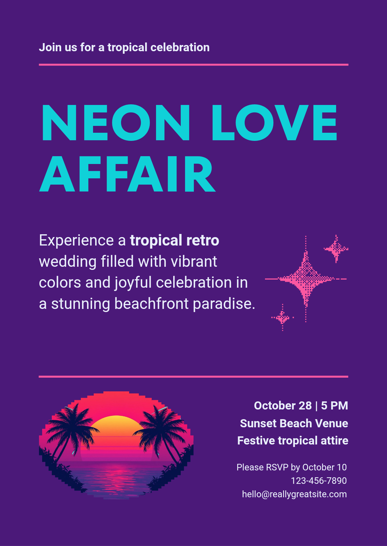 Neon Love Affair: Tropical Retro Wedding Celebration