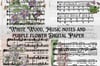 White Wood, Music notes, and purple flower Digital Paper, Music notes and purple flowers Digital Paper, Music notes, and white wood Vintage Paper, Music notes, and floral Background.