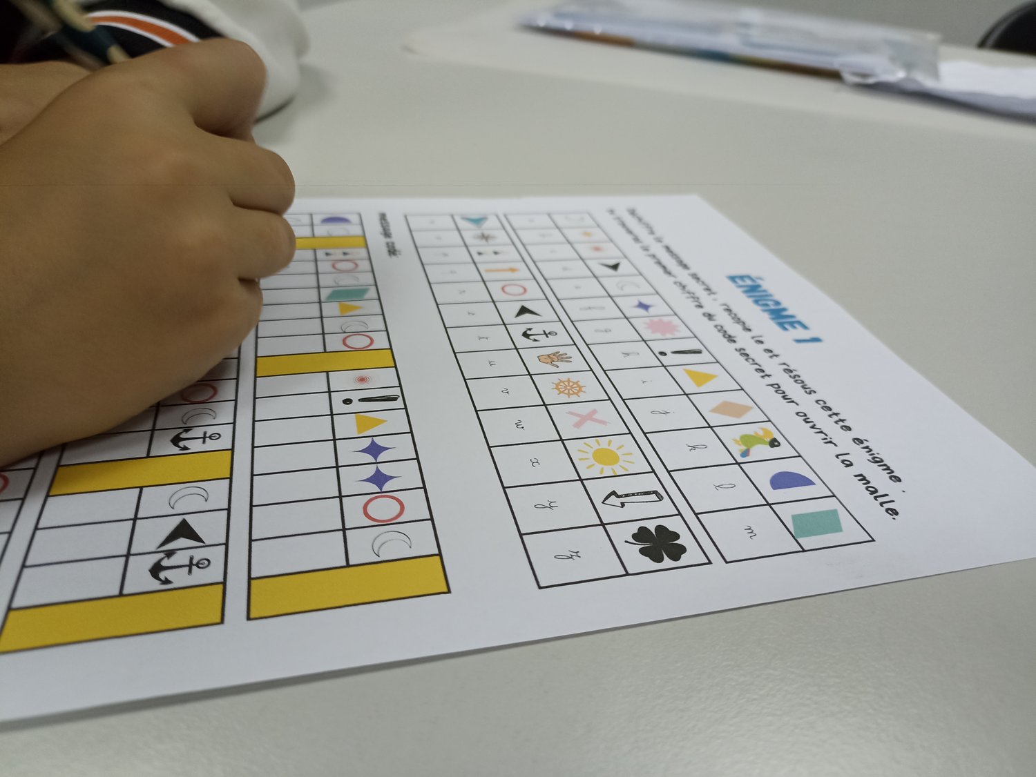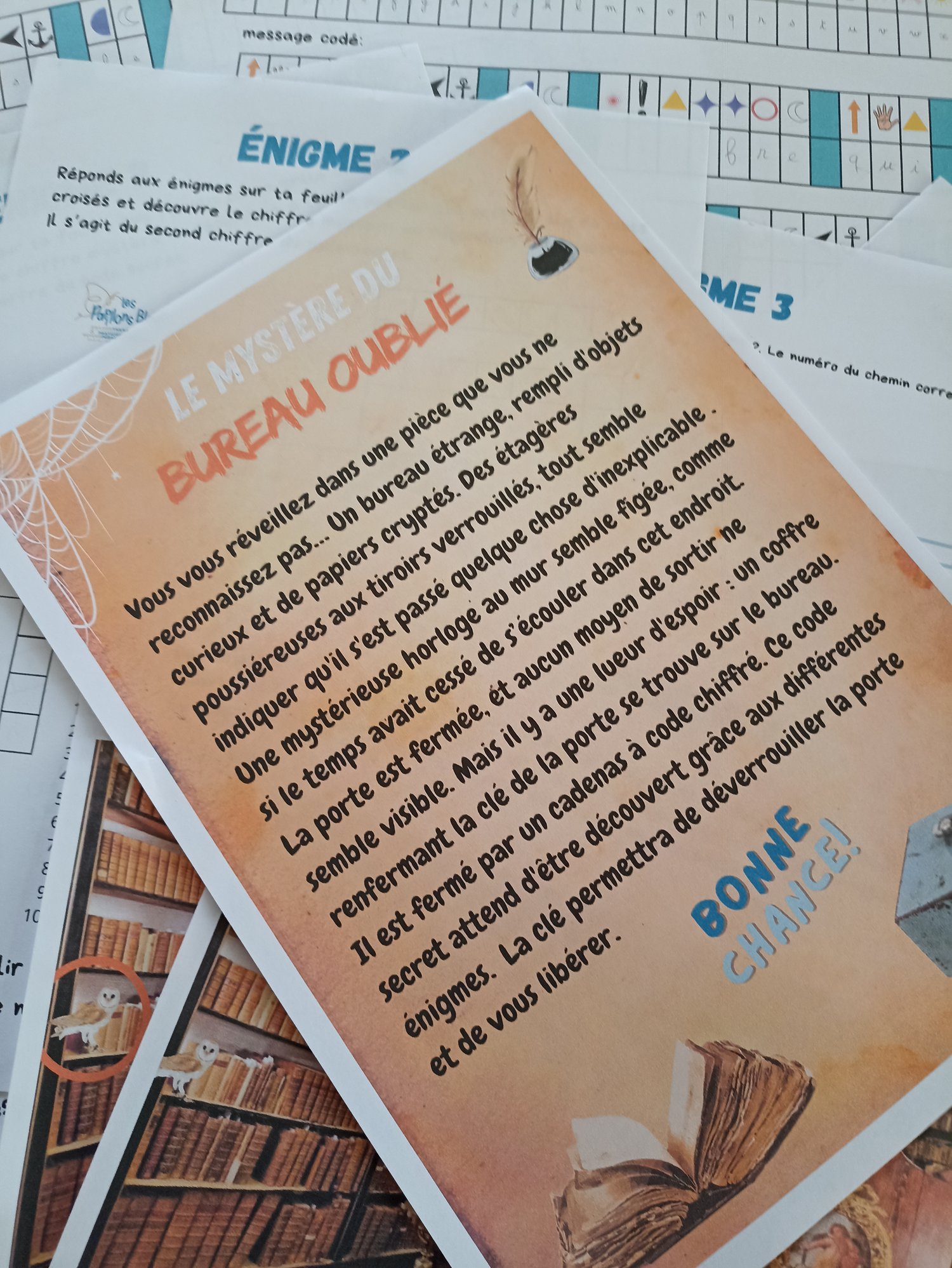 Pour arriver à en sortir, on a besoin de résoudre 4 énigmes afin de trouver le code secret du cadenas du coffre où est cachée la clé de la porte.
