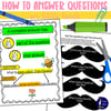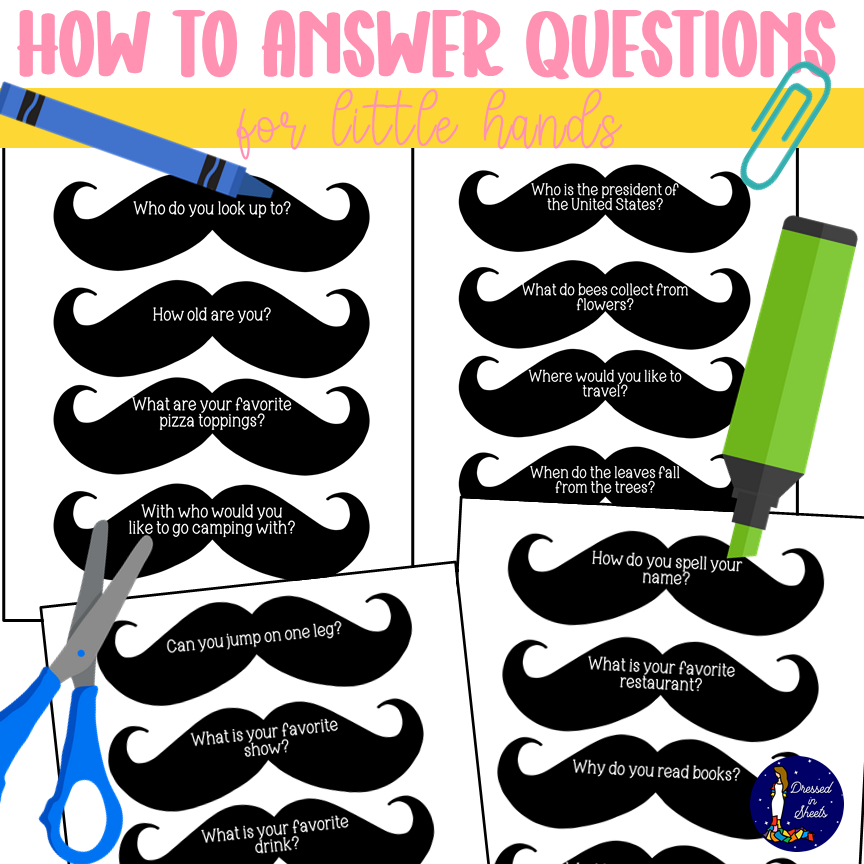 For the mustaches you can cut each mustache and attach a stick for fun. Have students ask the questions (or teacher can ask).