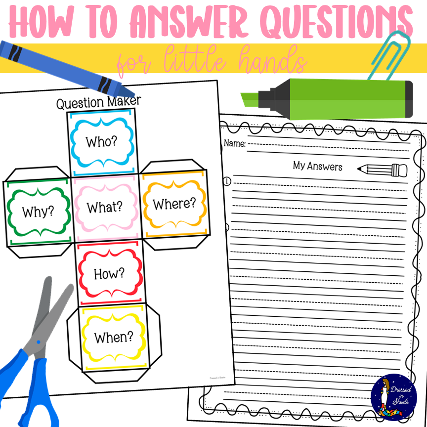 The writing question switcheroo activity will have a student use the "Question Maker" cube to write a question and pass the paper to their classmate who will then write their answer. The student who wrote the question will check that their classmate wrote the answer in a complete sentence.