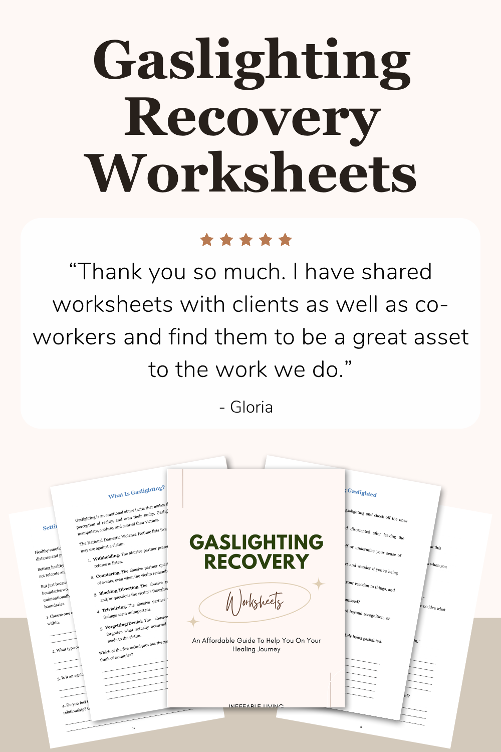 If you resonate with some of these questions, then Gaslighting Recovery Worksheets can help you regain confidence in your perceptions and develop strategies for setting healthy boundaries.