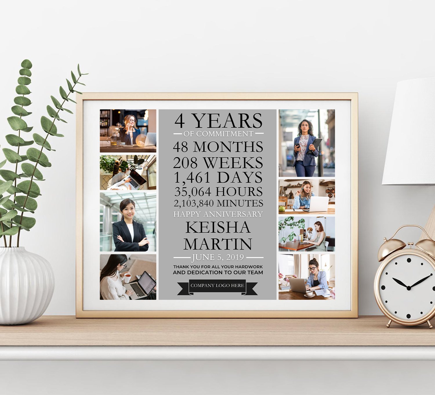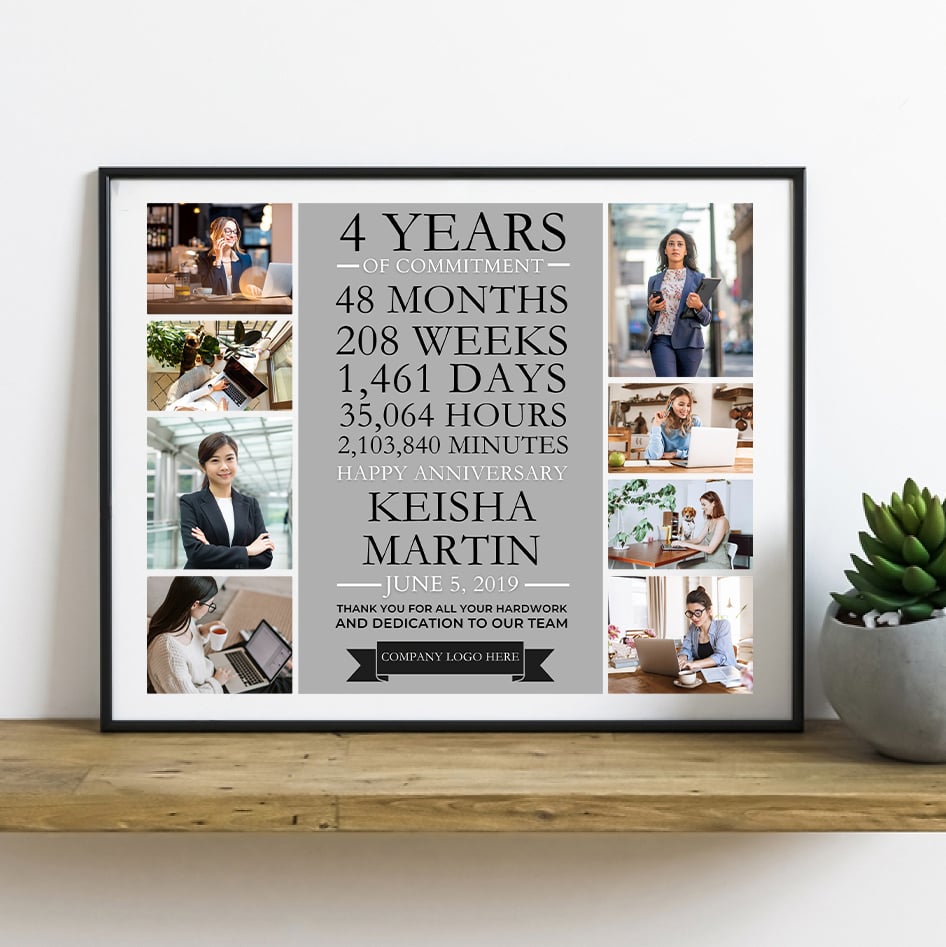 EDITABLE 4 year work anniversary gift for employees photo collage, years of service, 4th anniversary, thank you gift, digital file