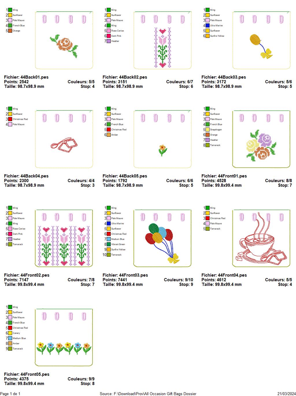 The designs in this pack come in a range of sizes, all of which are clearly indicated in the pictures in millimeters. This means that you can easily choose the right size for your project, whether you're embroidering a small logo or a larger image.