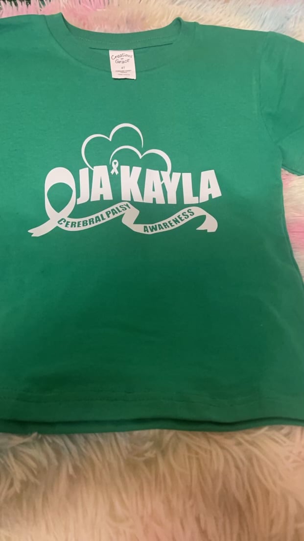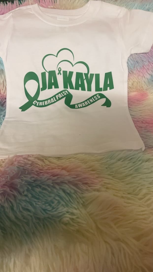 Ja'Kayla's World shirts are a representation to bring awareness to Cerebral Palsy. Cerebral Palsy is the most common motor disability in childhood. Cerebral meaning the brain and Palsy meaning weakness or problems using muscles.