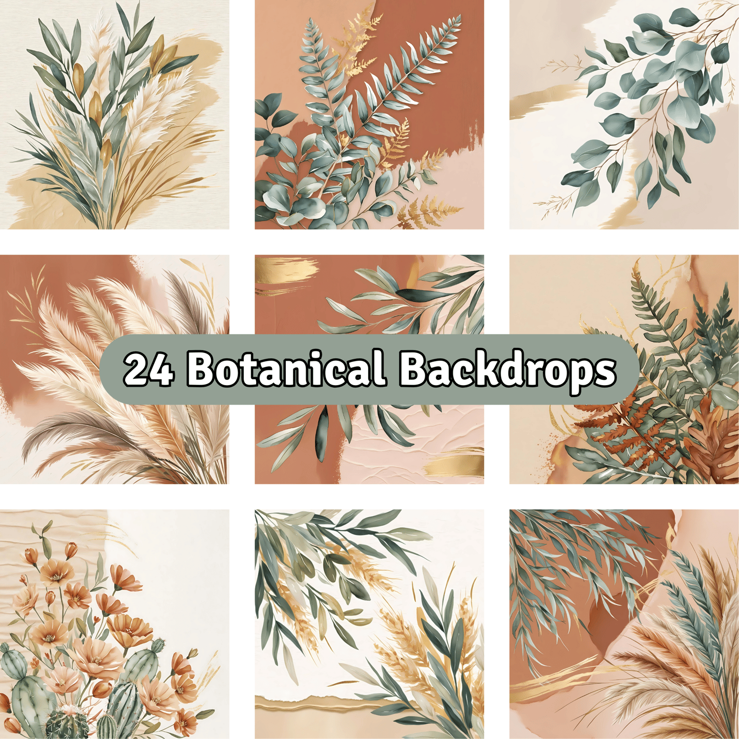 Watercolor Botanical Backdrops - Set of 24 Earthy Colors Designs