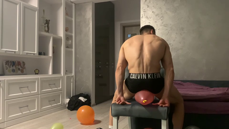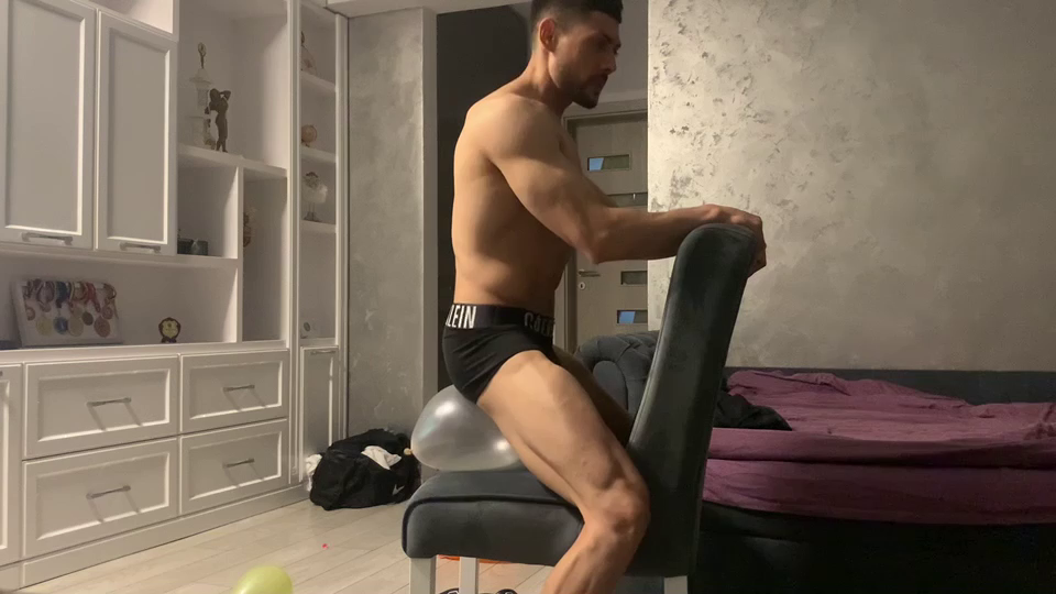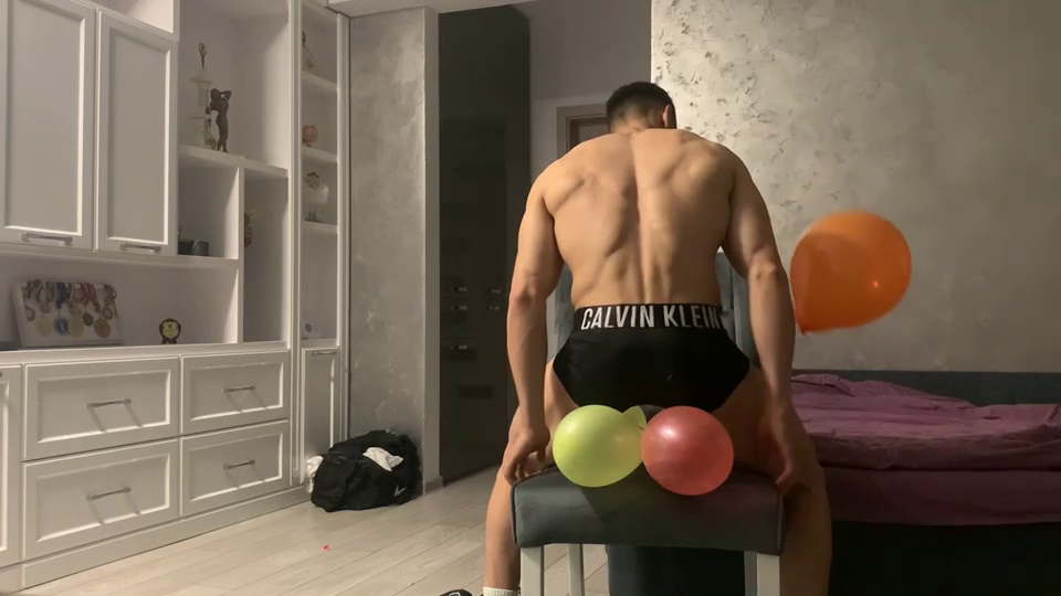 Muscle dude Octavio wants to try what it feels like crushing balloons under his butt.