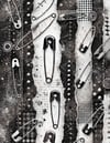 Distressed metals, leather straps, studs & grommets