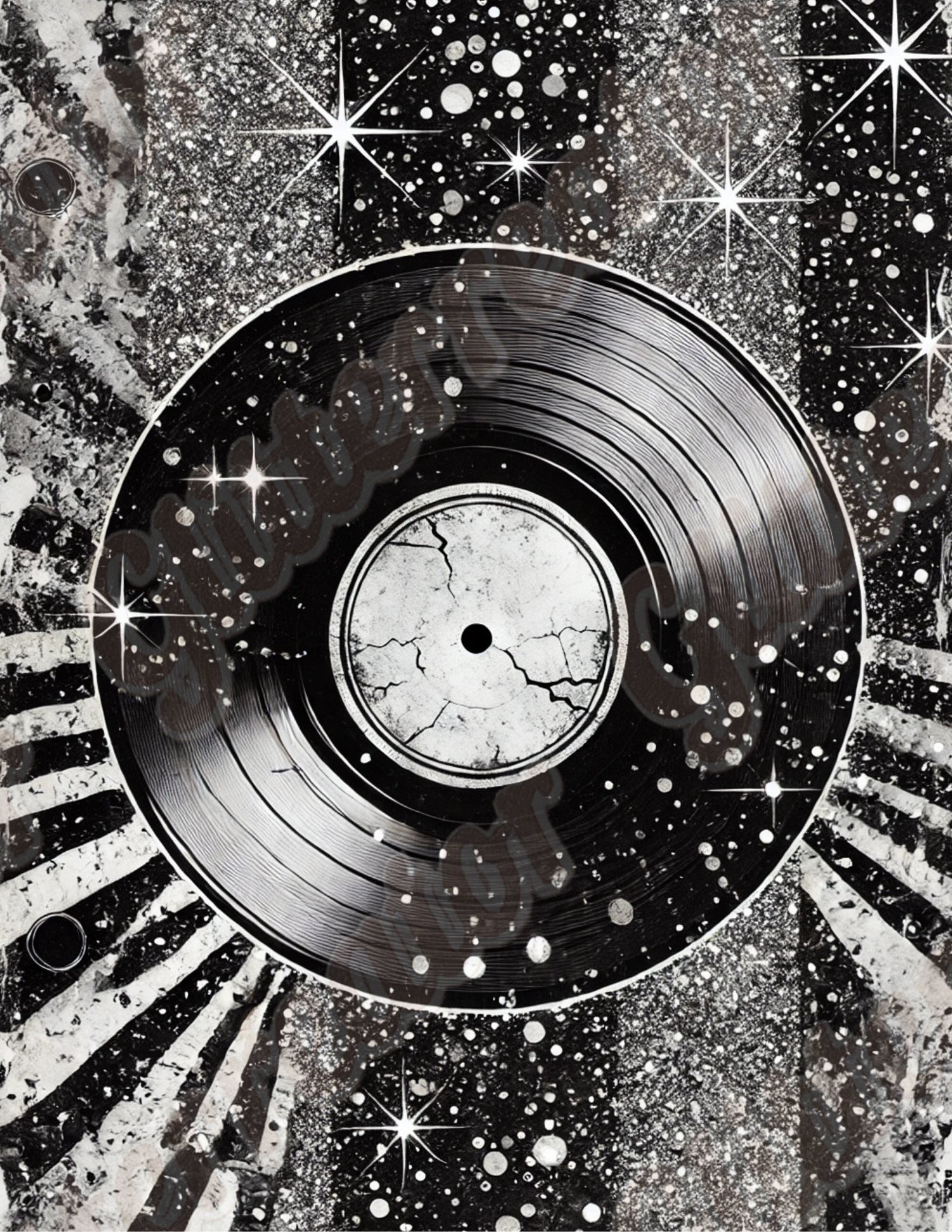 Vinyl record patterns, abstract swirls & moody noir tones