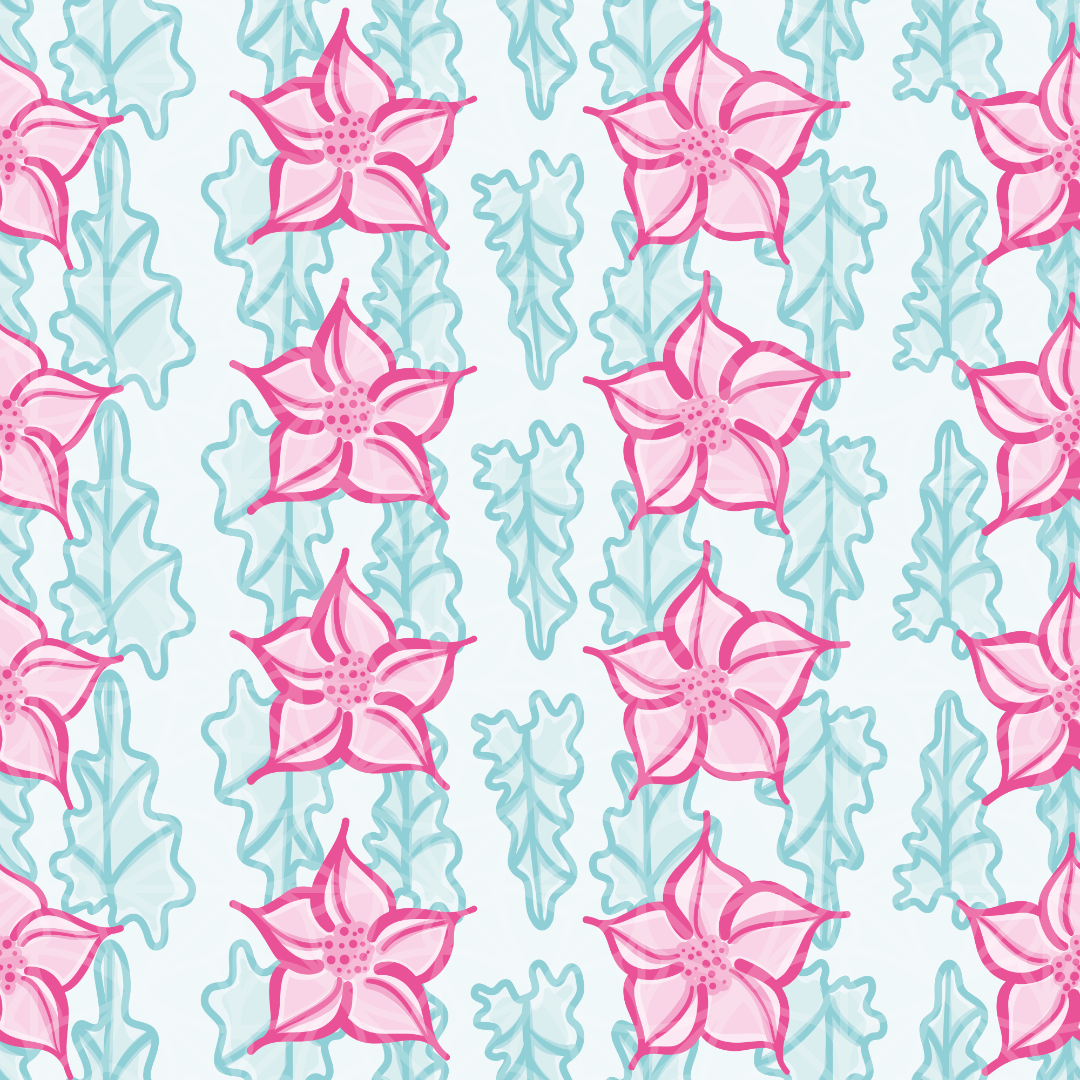 Star floral with leaves repeating pattern. Doodle botanical vector illustration background.