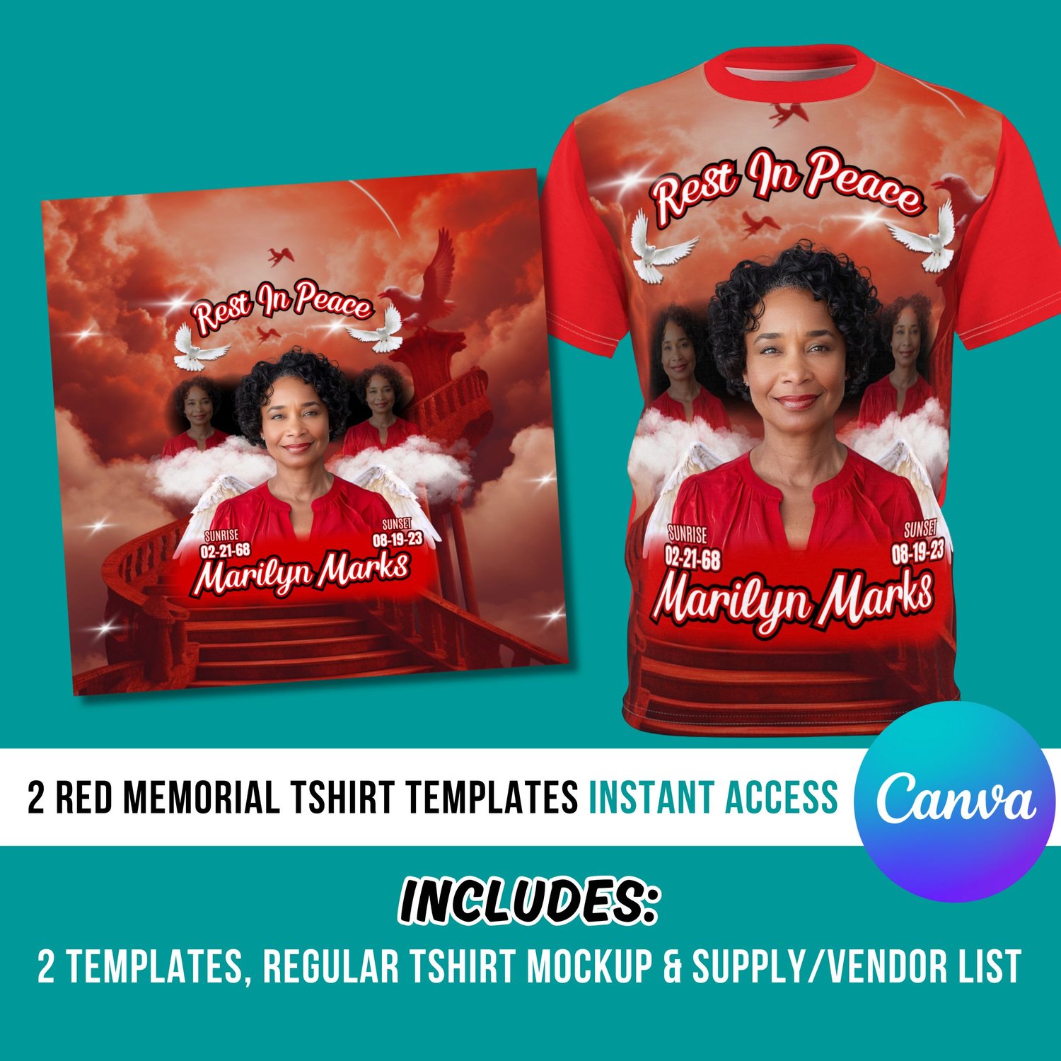 Red Memorial Tshirt Design Editable in Canva, Memorial T Shirt Design, In Loving Memory Tshirt Template, Canva Memorial Tshirt Template