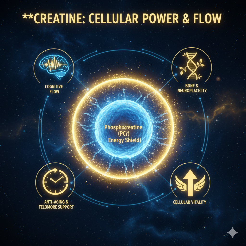 Learn how creatine boosts phosphocreatine (PCr) stores in neurons and muscles, regenerating ATP for razor-sharp focus, boosted endurance, and cellular resilience.