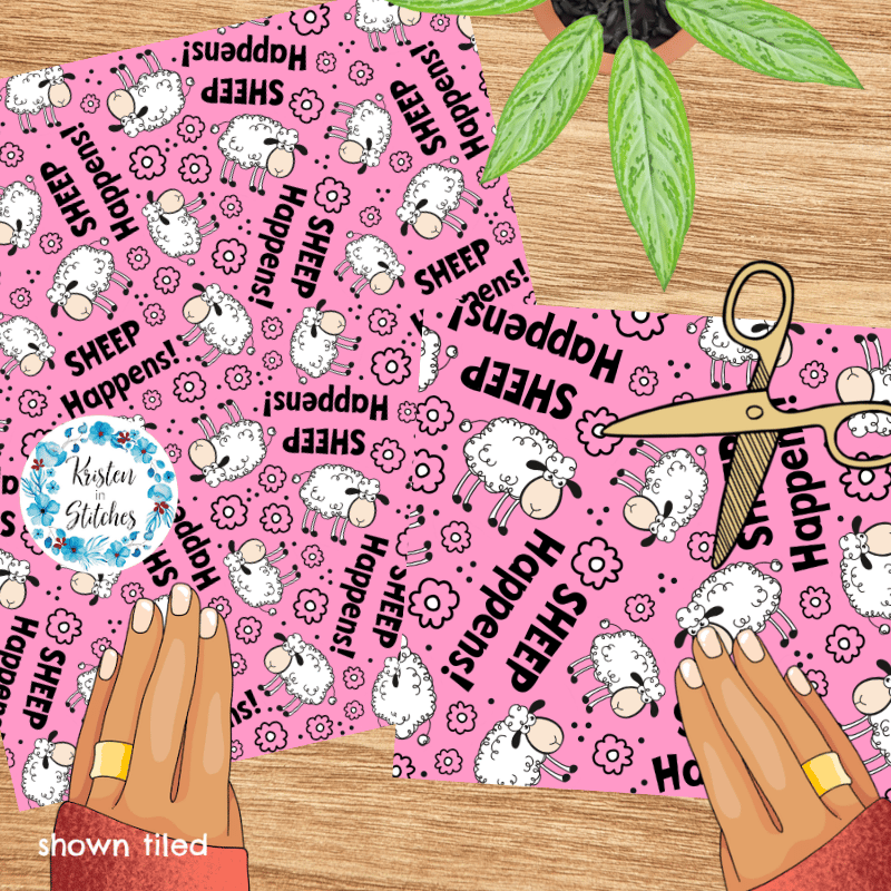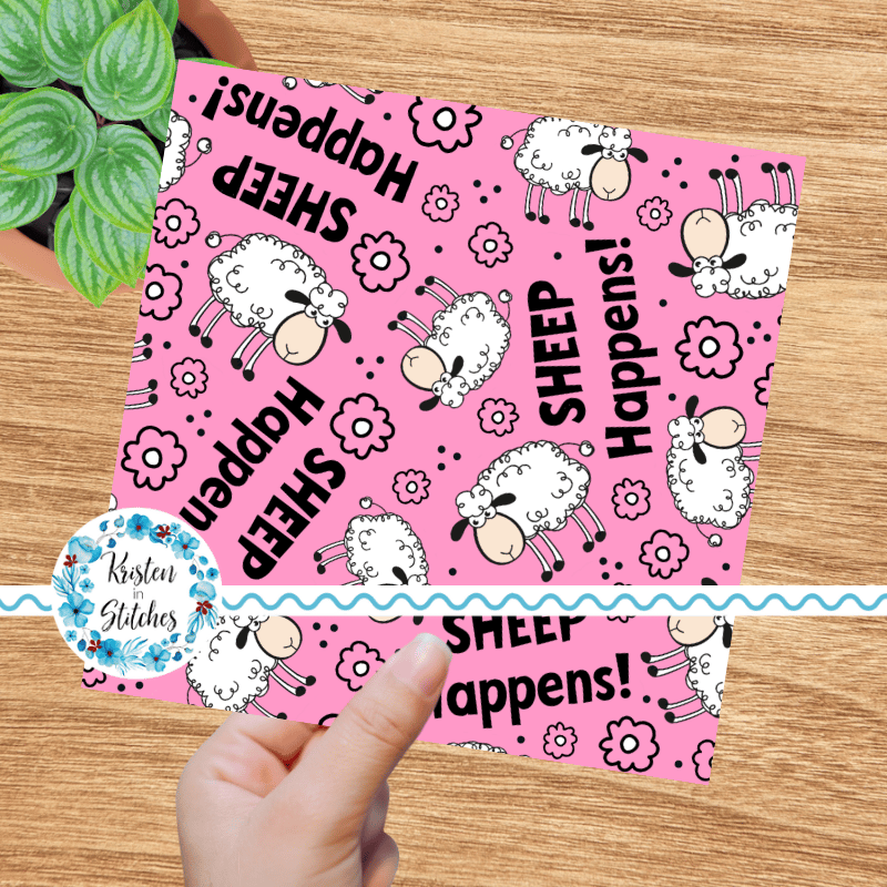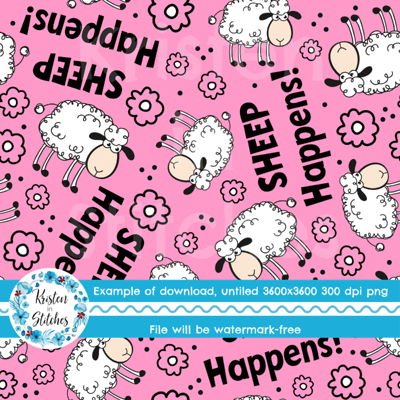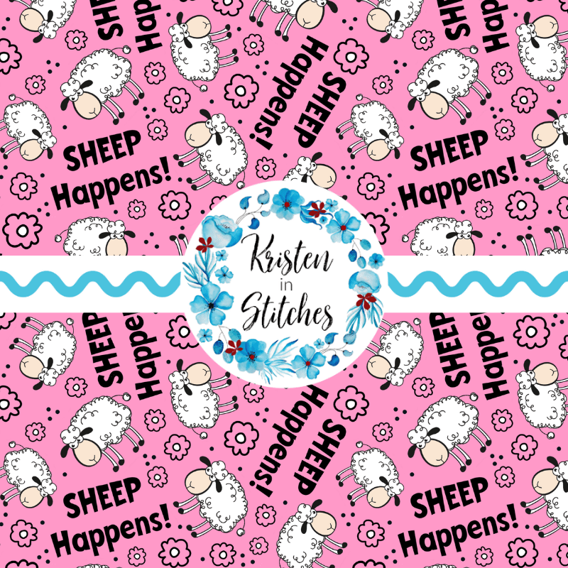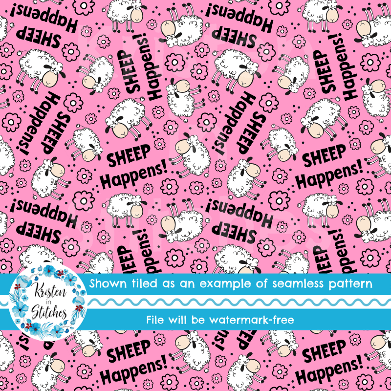 Sheep Happens Seamless Pattern, Sarcastic Animals in Pink