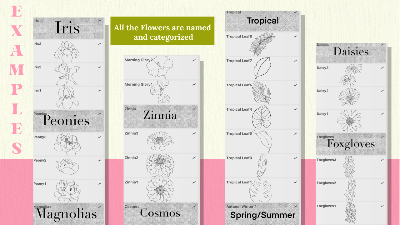 Drawing flowers can be incredibly time-consuming, and starting with a blank canvas adds pressure to create beautiful designs, instantly!