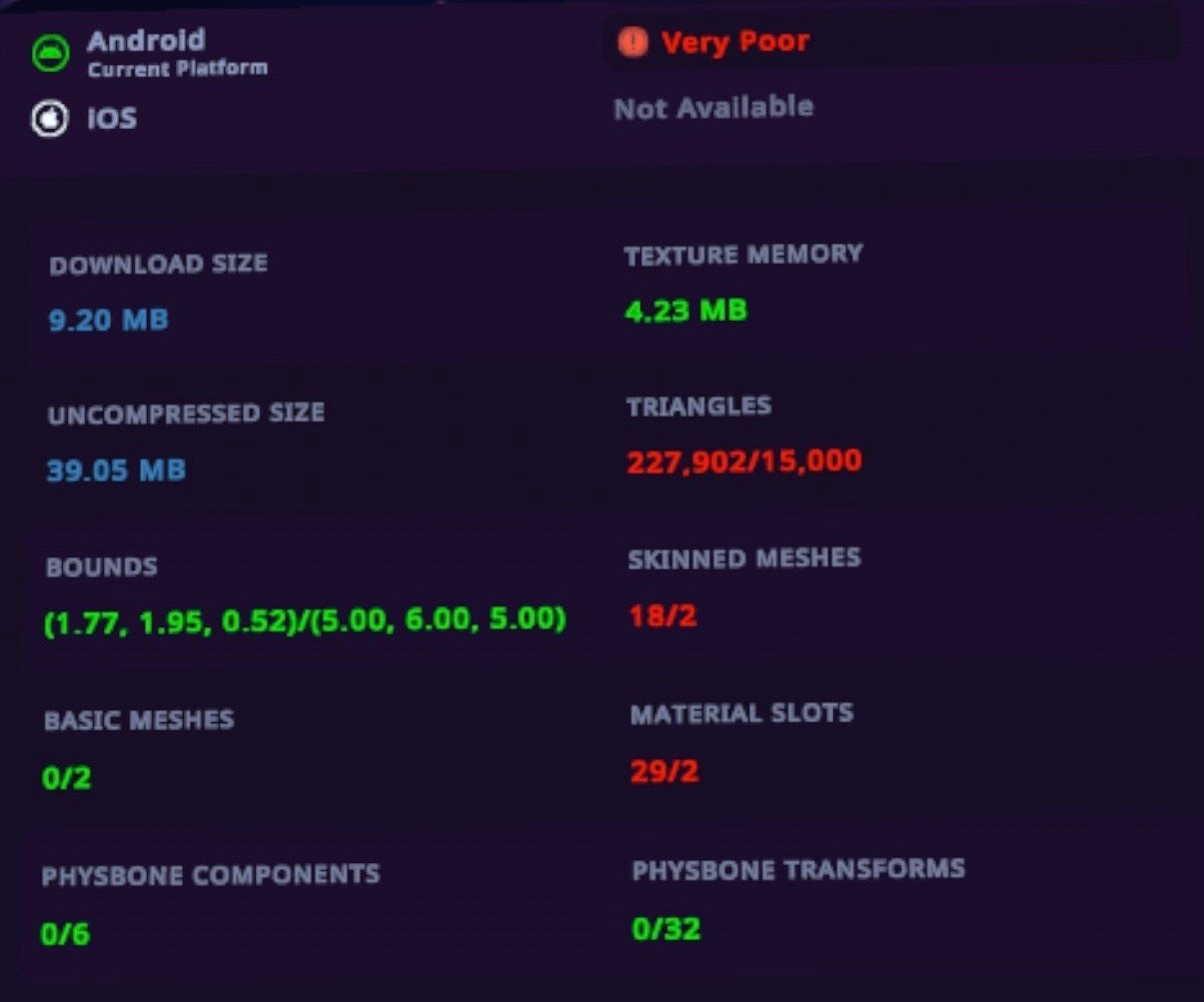 ⋆♱ Due to Vrchats limit on quest I was able to make his skin look well quality but not the same for the clothes I did my best if you want to make them higher quality you may need to remove items.