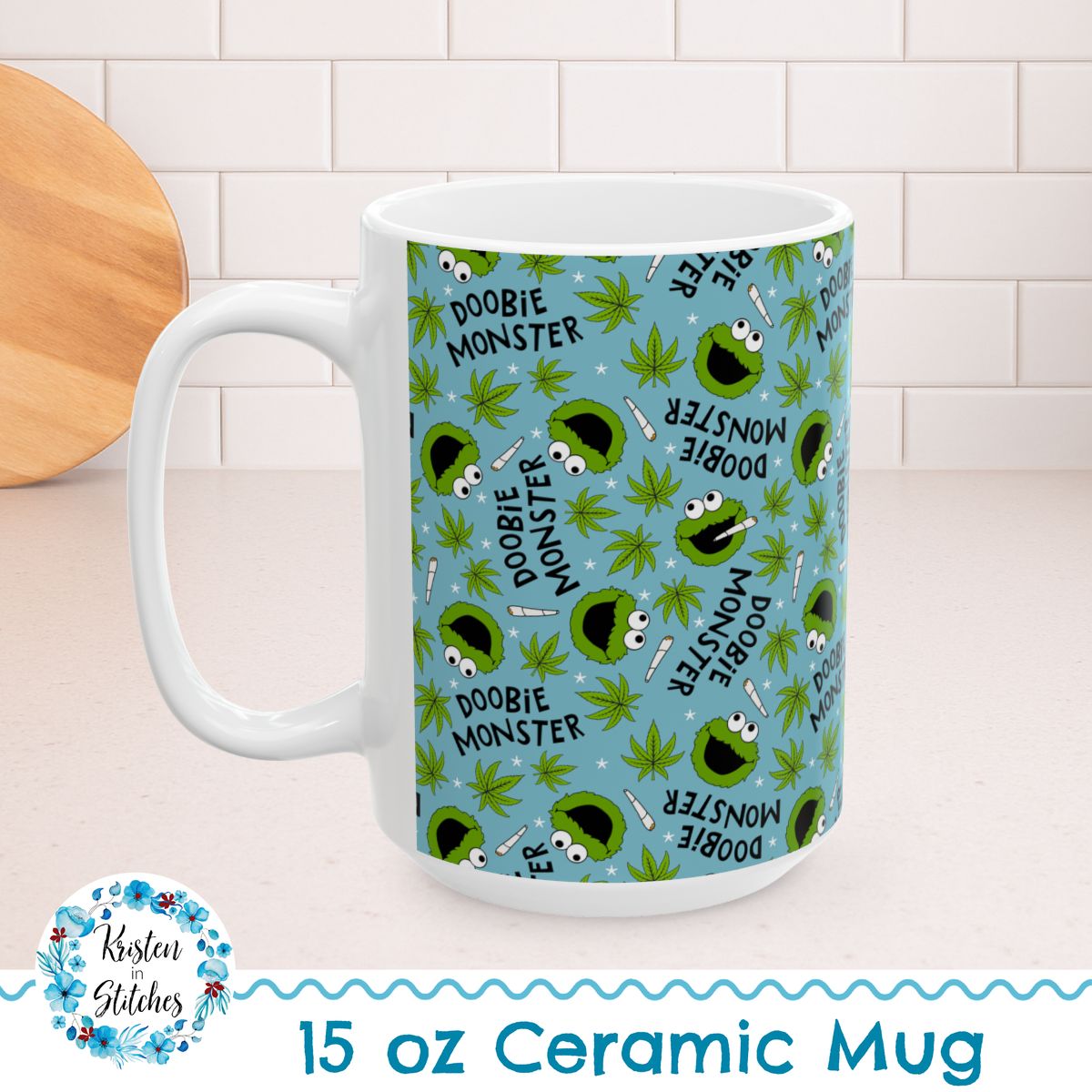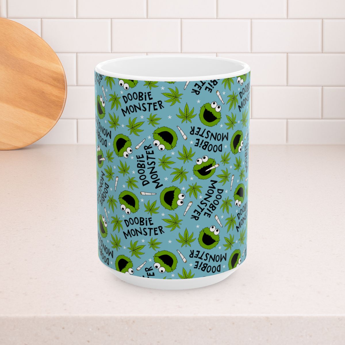Doobie Monster 15oz Ceramic Mug, Large Coffee Cup, Marijuana Humor