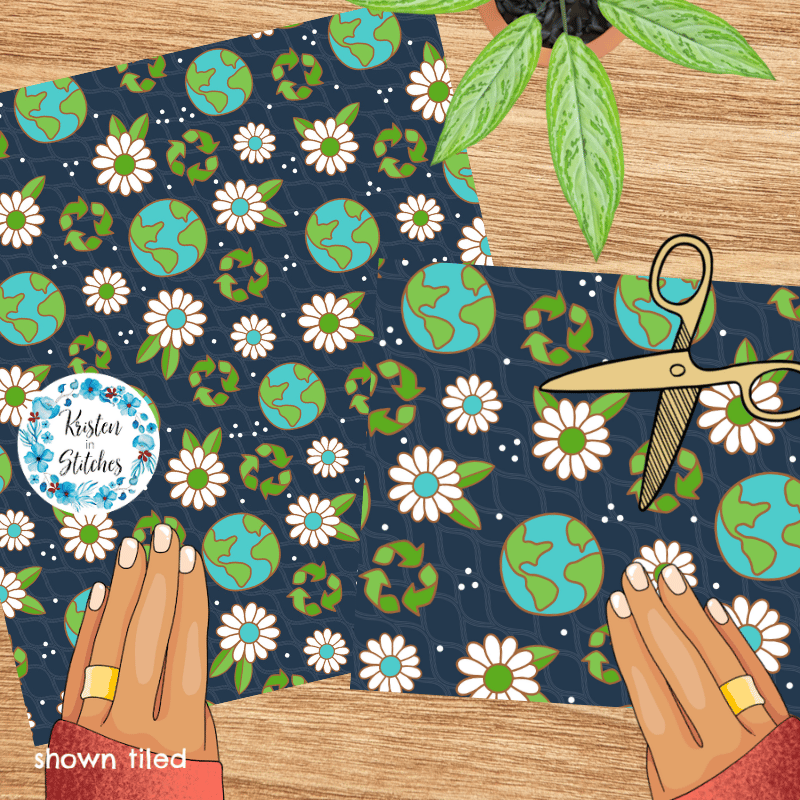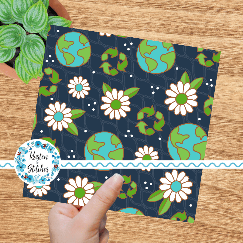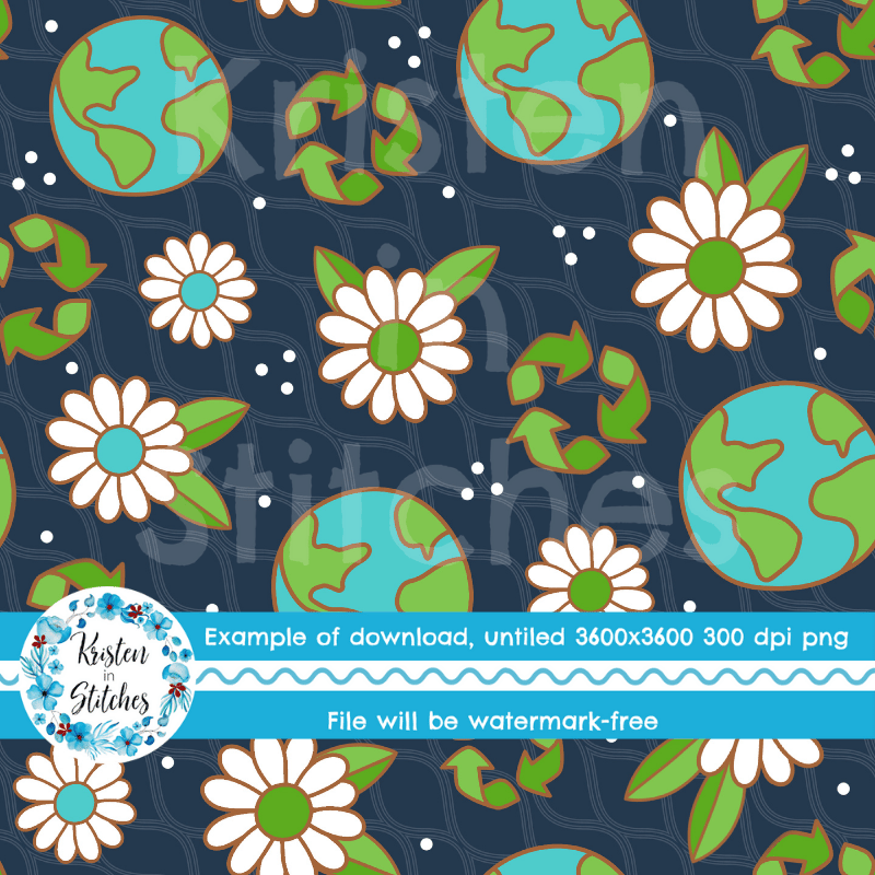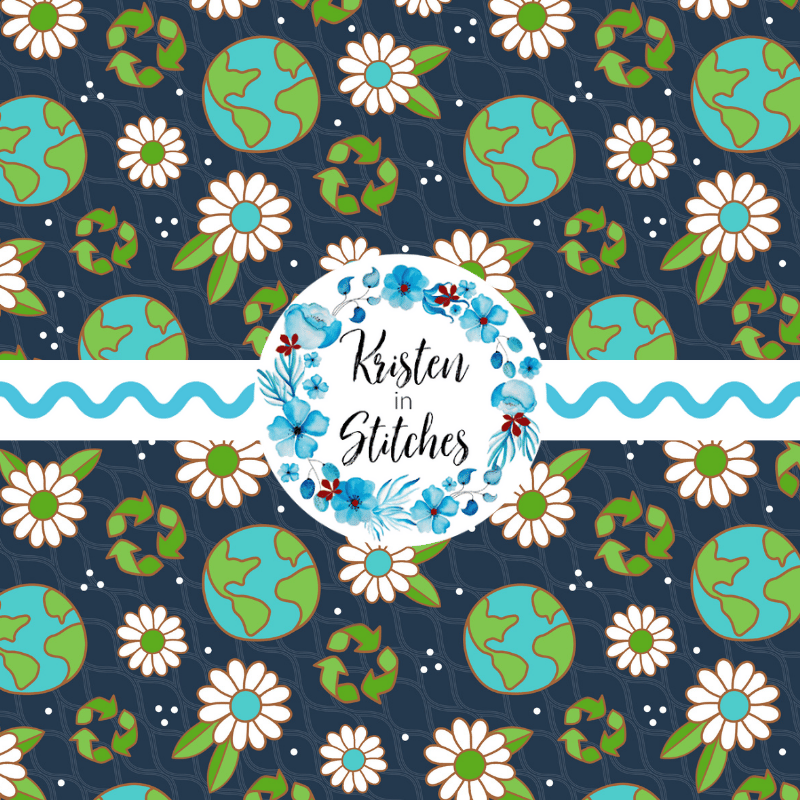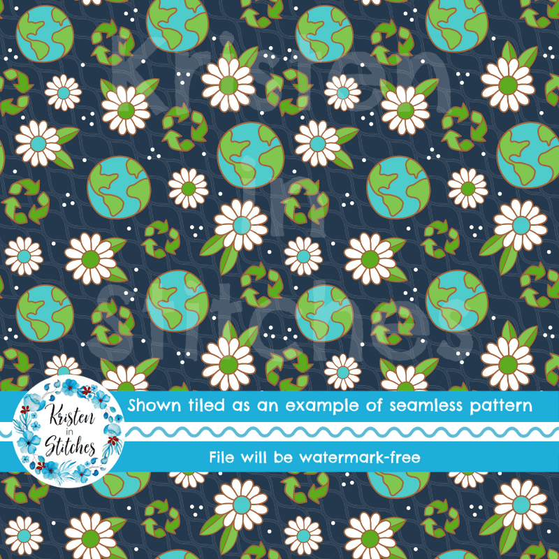 Earth Day Daisy Floral Spring Seamless Pattern, Reduce Reuse Recycle
