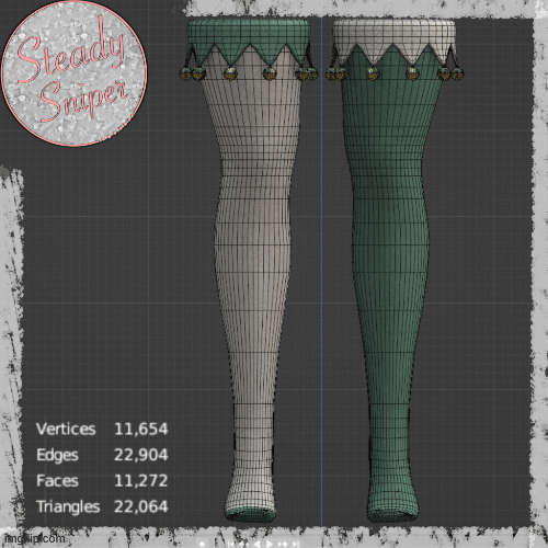 Socks: Verts 11,654 - Edges 22,904 - Faces 11,272 - Tris 22,064 - Mats 1