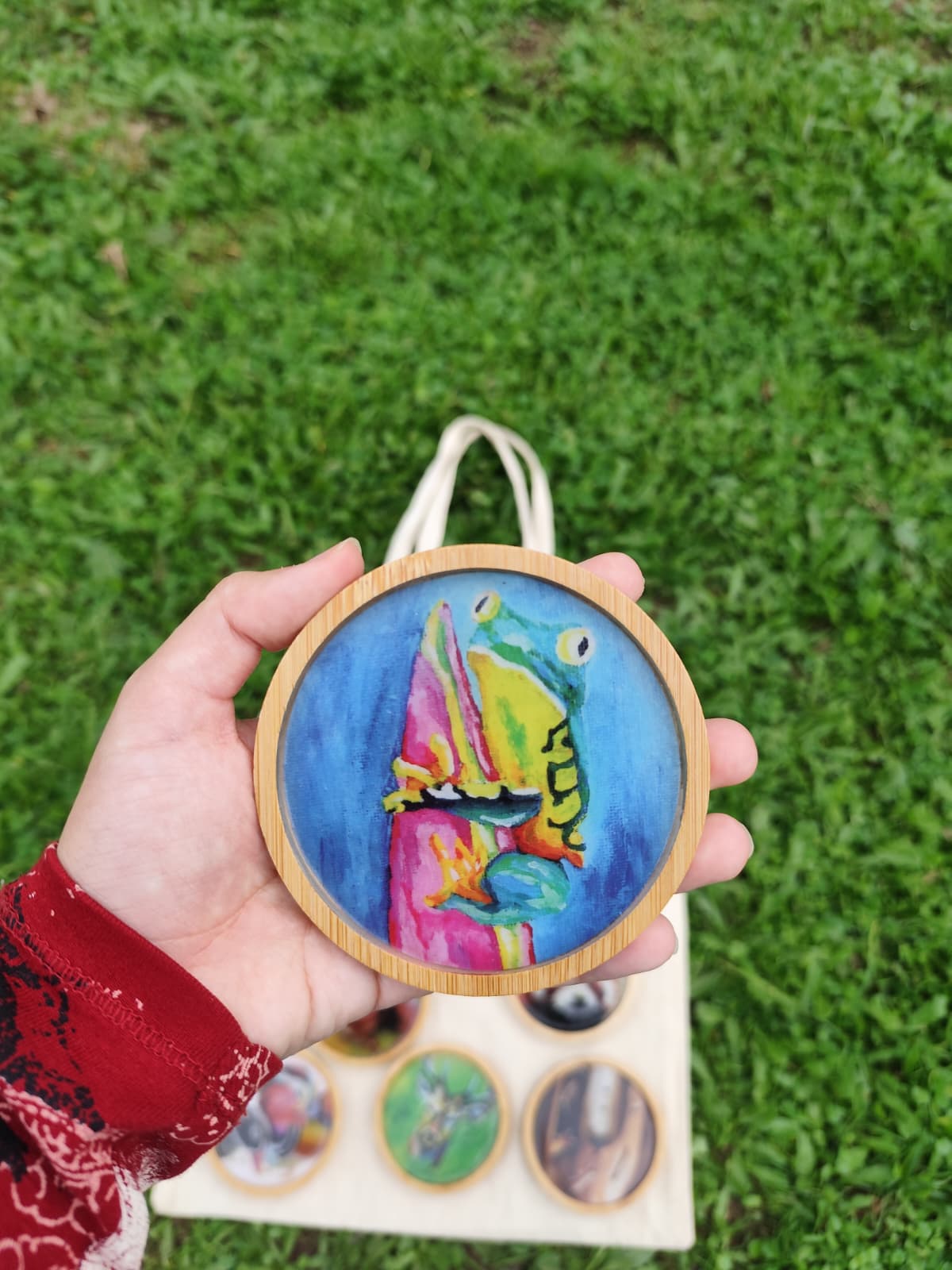 Pequeña pero llena de personalidad, esta ranita tropical irradia vitalidad y color en cada trazo. Con sus tonos brillantes y mirada curiosa, parece lista para dar un salto y acompañarte con su energía juguetona. Un posavasos basado en un en mini lienzo que convierte la alegría de la naturaleza en un detalle artístico único.