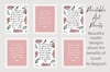 Included are six art prints. Three are in solid dusty pink with white wording, and three are on a white background with a dusty pink and mint green border with roses and leaves. This will look beautiful on your wall in a frame side-by-side!