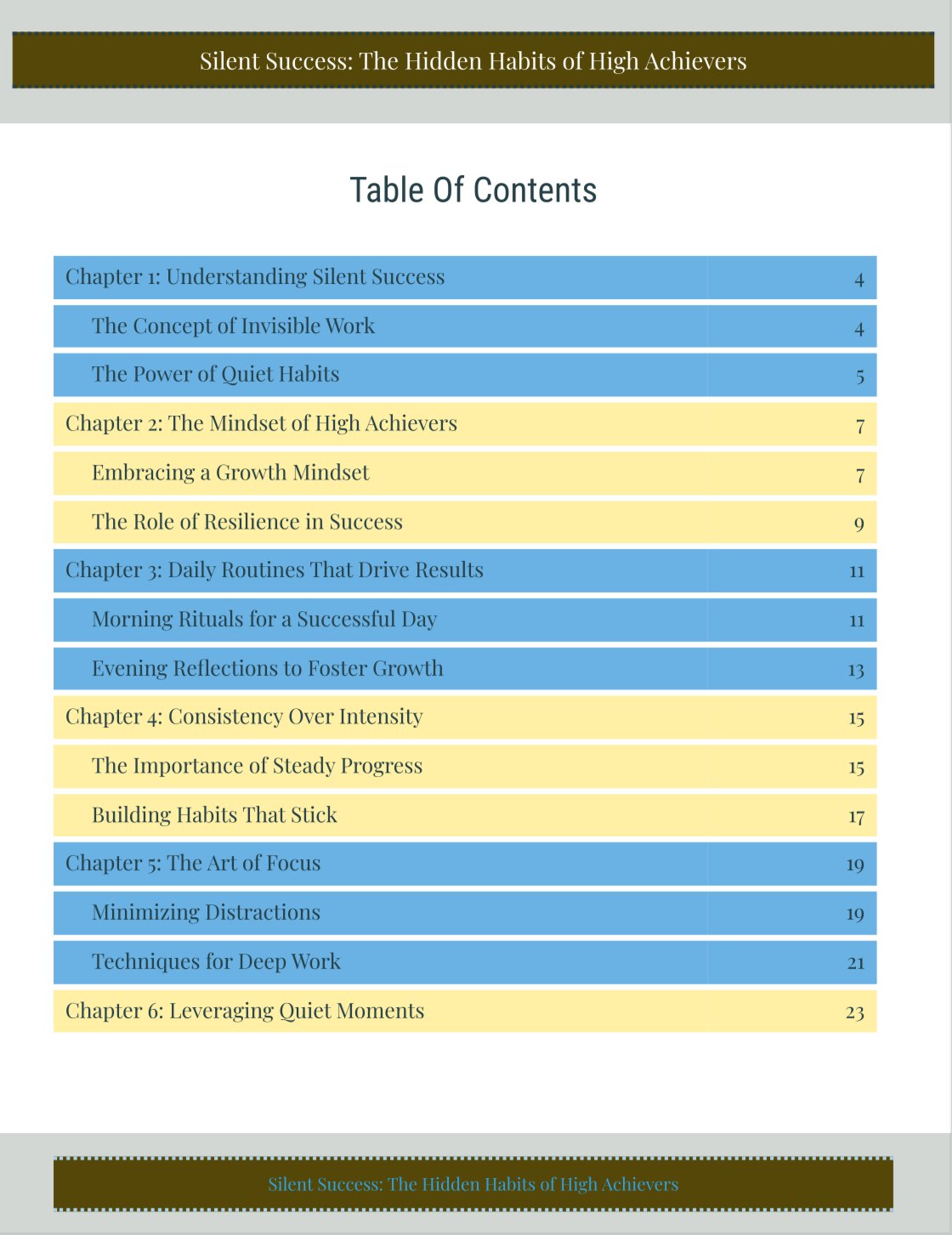 Silent Success: The Hidden Habits of High Achievers takes you behind the curtain of achievement to explore the invisible routines, mental disciplines, and subtle decisions that top performers rely on. Drawing from research in psychology, productivity, and high-performance behavior, this e-book reveals how success is often built in silence—through actions no one claps for, sacrifices no one sees, and persistence no one tracks.