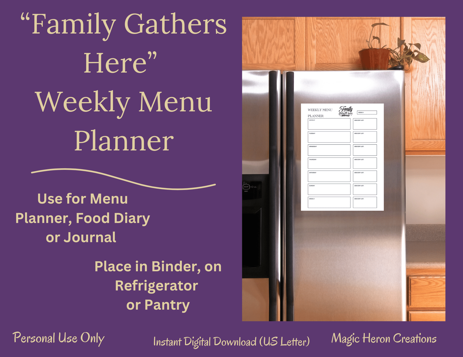 Family Gathers Here – Printable Weekly Dinner Menu Planner