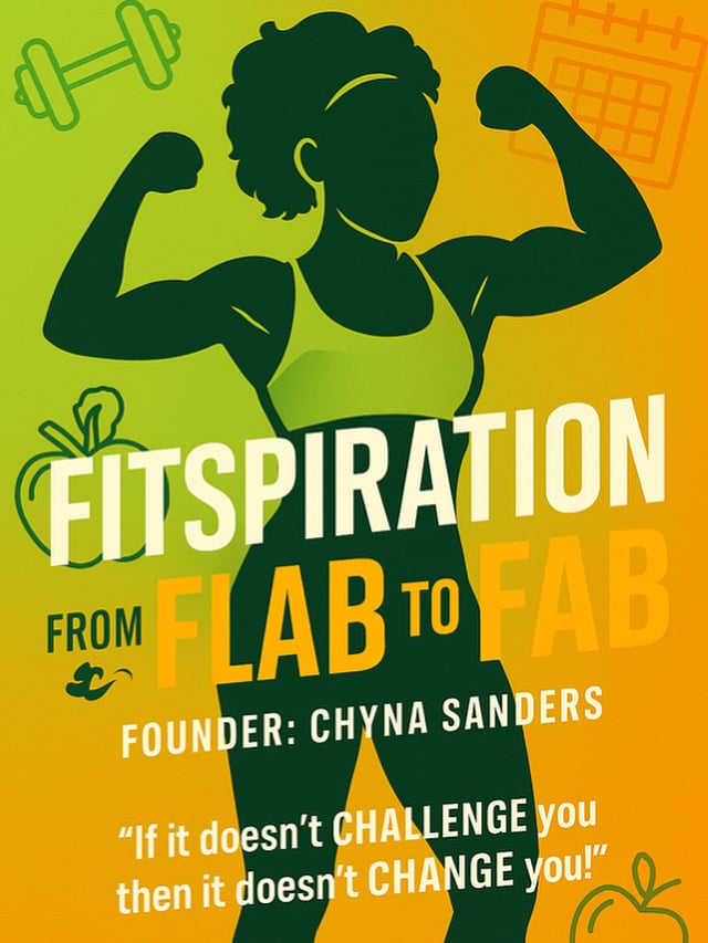 Transform your body and mindset with this beginner-friendly fitness guide designed by Chyna Sanders, founder of Fitspiration from Flab to Fab. Includes strength training workouts, endurance tips, and a motivational slogan to push you further: “If it doesn’t CHALLENGE you, it doesn’t CHANGE you!”