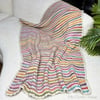 This pattern is all about random stripes and playful color changes! Use variegated yarn for a marble effect, or mix your favorite colors to create a look that’s truly your own. The best part? There are no ends to weave in—you simply carry the yarn up the sides, and everything gets neatly hidden with the border.