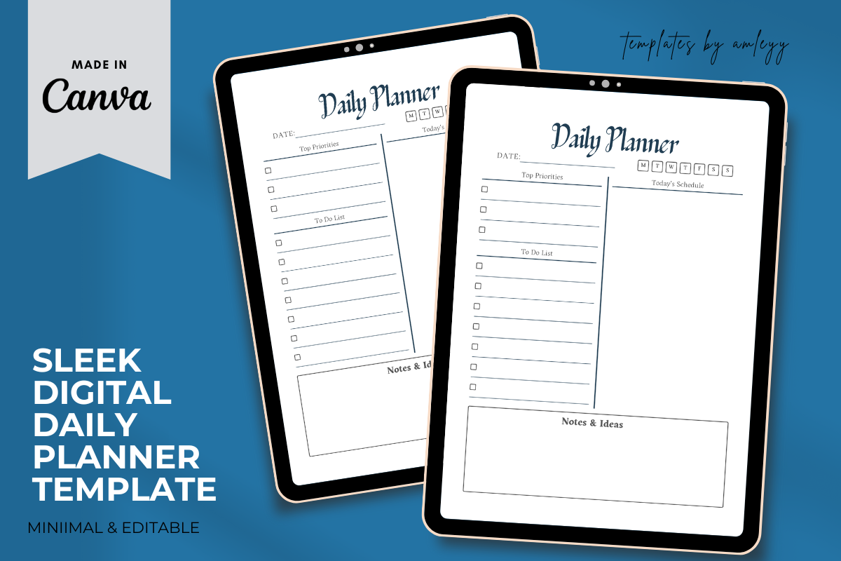 Sleek Digital Daily Planner Template Canva | Editable Daily Schedule & Productivity Planner
