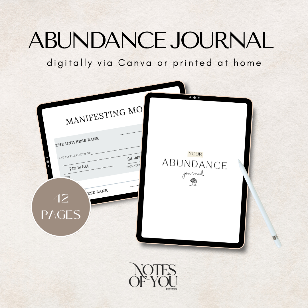 This 42-page Abundance Journal & Manifestation Planner is your powerful guide to cultivating a mindset of wealth, prosperity, and unlimited possibilities. Designed to help you identify and release limiting beliefs, track your manifestations, and align with the frequency of abundance, this printable and editable journal invites you to transform your relationship with money and attract your deepest desires. Whether you're seeking financial freedom, career success, or simply a more abundant life, this journal lovingly supports you in creating your new reality.