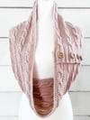 Driven by the desire to design a cushy, warm, textured cabled cowl to wrap myself up in during the cold winter days, I experimented with different textures and stitch combinations. I sought out the perfect combination that would be equally beautiful on both sides of the fabric, so I could create different looks by buttoning the cowl in various ways. That cowl is Reversibility!