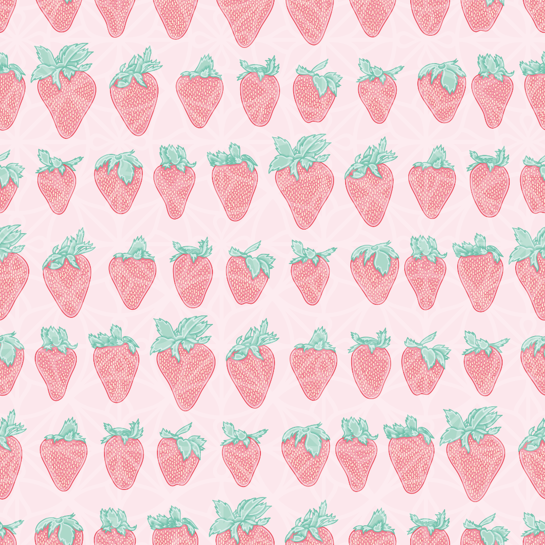 Cartoon strawberries vector repeat pattern. Cute pink fruit seamless illustration background.