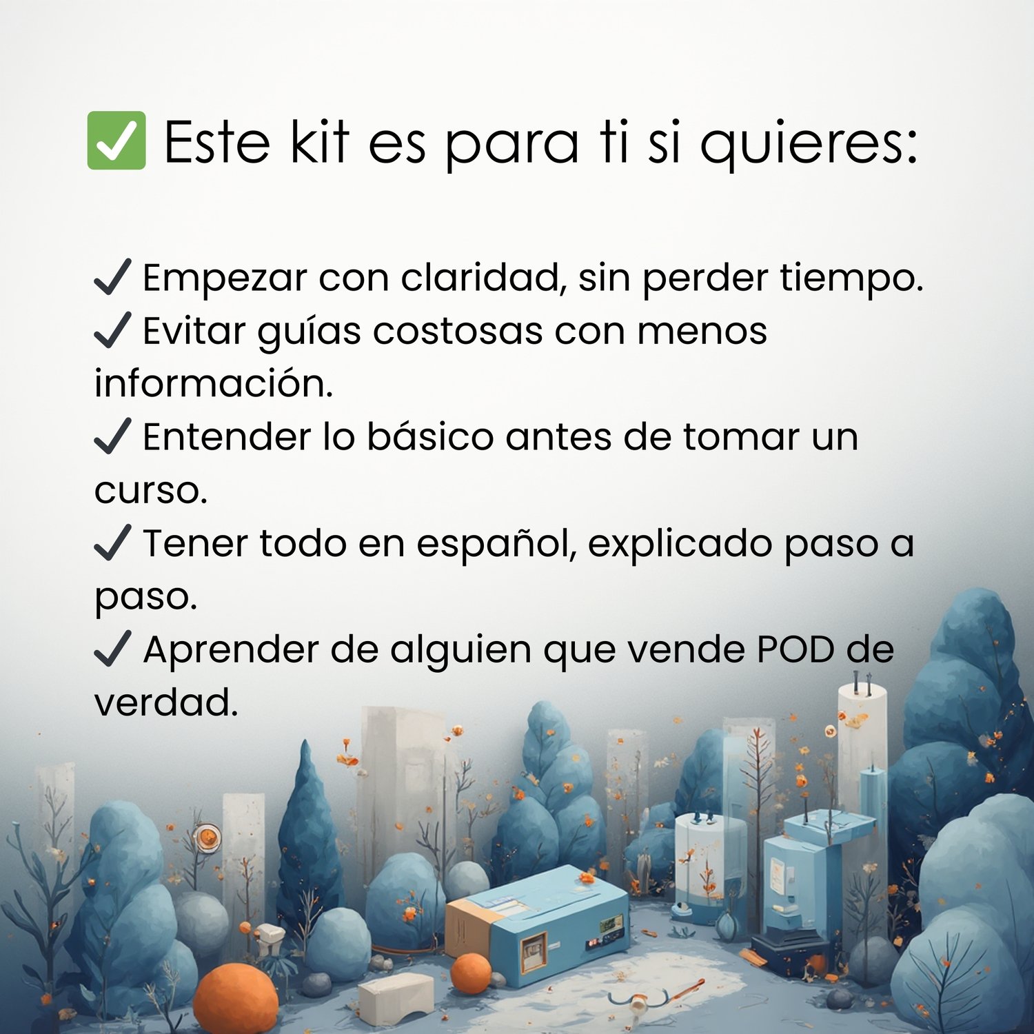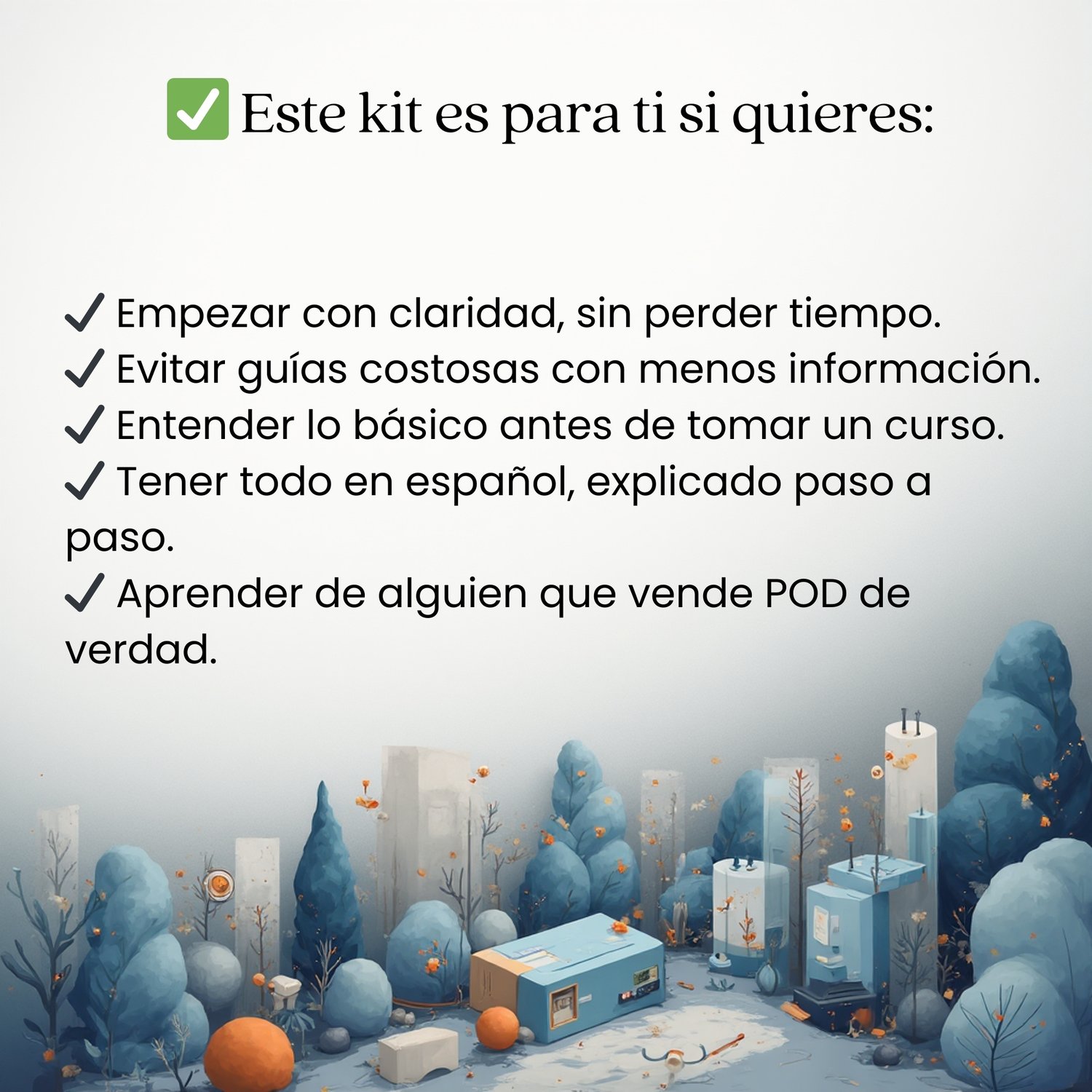 Este kit digital en español fue creado para ti: emprendedora o emprendedor que quiere empezar su tienda POD con claridad, sin cursos caros ni horas de confusión.