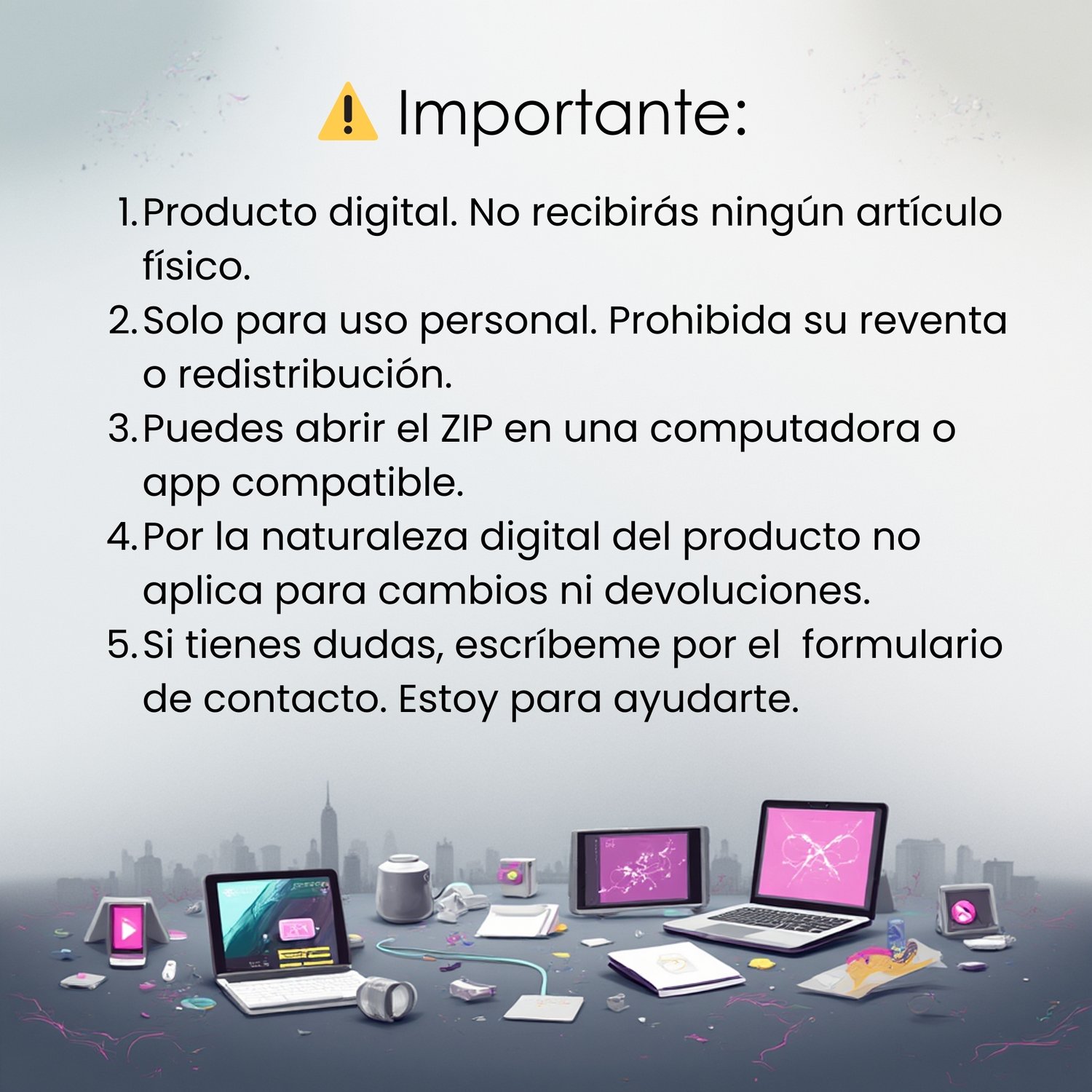 Este producto es 100% digital. No se enviará ningún artículo físico.