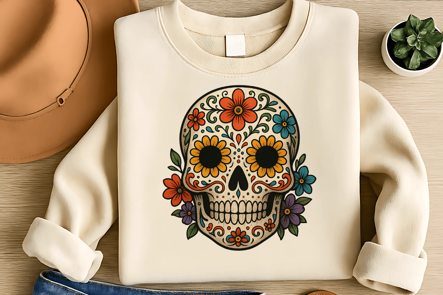Floral Skull Enchantment Sublimation PNG – Elegant Flower Skull for T-Shirts – Whimsical & Creepy Halloween Vibe – 300 DPI Instant Digital Download