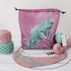 This collaboration was worked with Eva of The Blue Rabbit House who has designed the cutest manatee bag (see last image)! The original yarn used (Knitcraft and Knittery, the pink and green sample) was discontinued, so an alternate yarn was used to make a second version (Serendipitous Wool, the dark purpley magenta and minty grey variegated sample).