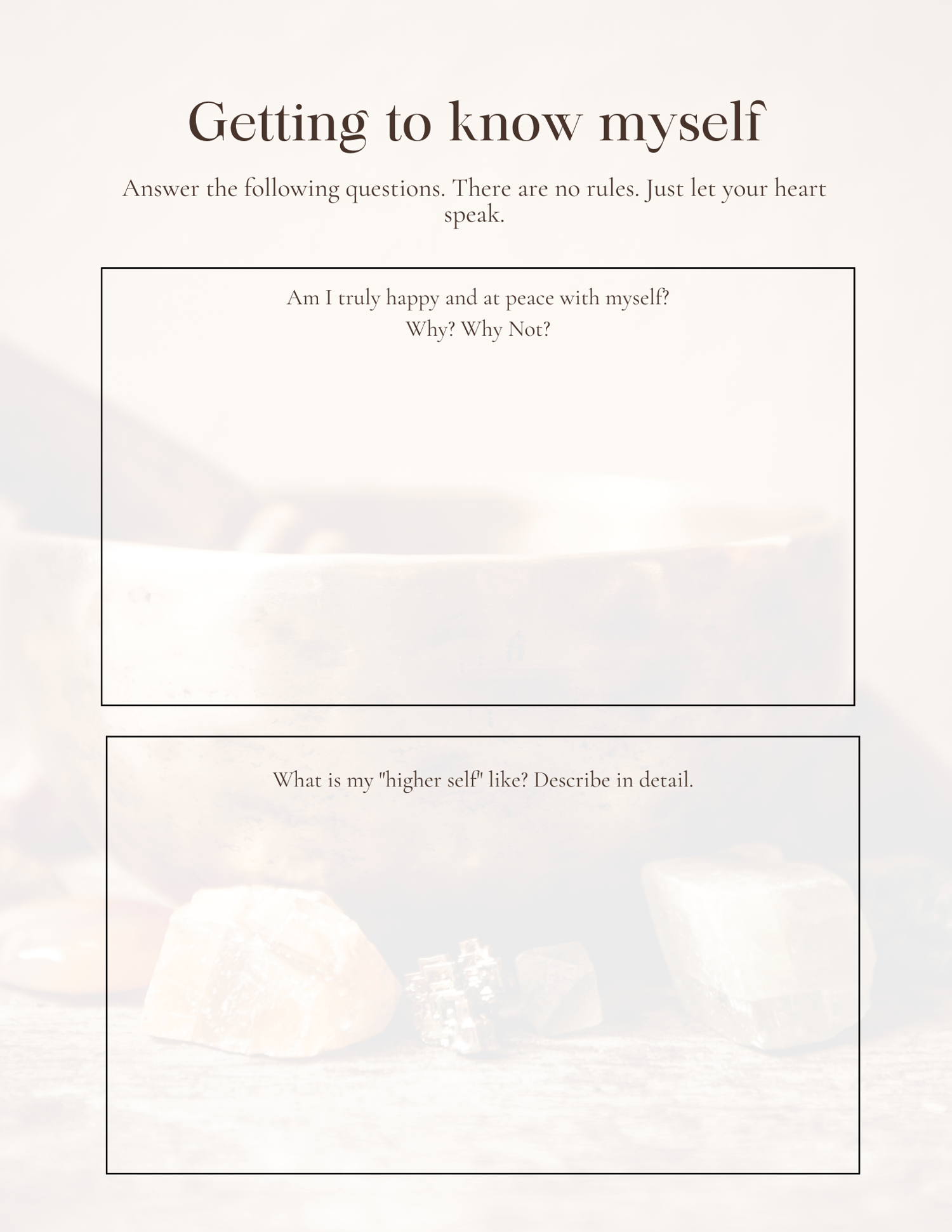 - Guided exercises for Getting to Know Myself and deepening self-discovery.