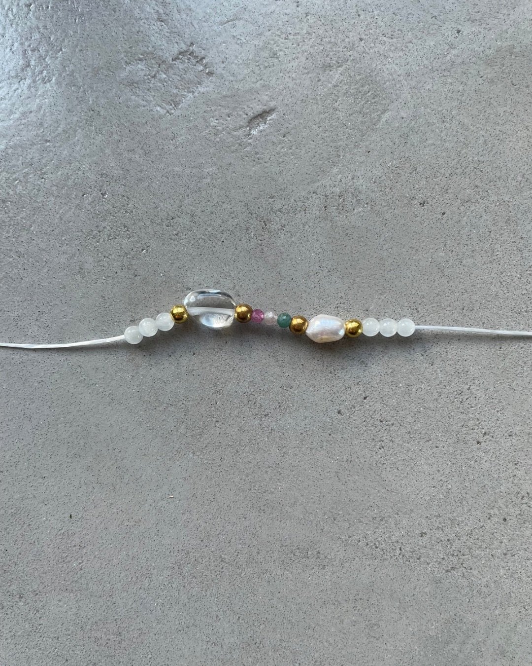 Zur Reinigung gehst du mit dem Armband oder Fußkettchen duschen oder hältst es unter fließendes Wasser. Alternativ kannst du es auch über Nacht auf eine Selenitplatte legen.