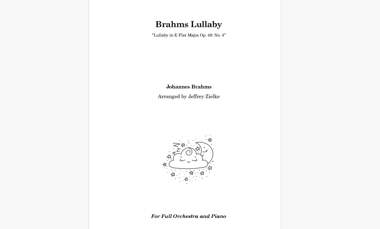 This is an orchestral arrangement of the beautiful and classic lullaby composed by Johannes Brahms (d 1897), with tender woodwinds and piano, lush strings, and pulling harmonies. Great for Beginner to Intermediate school orchestras, community orchestras, and others.