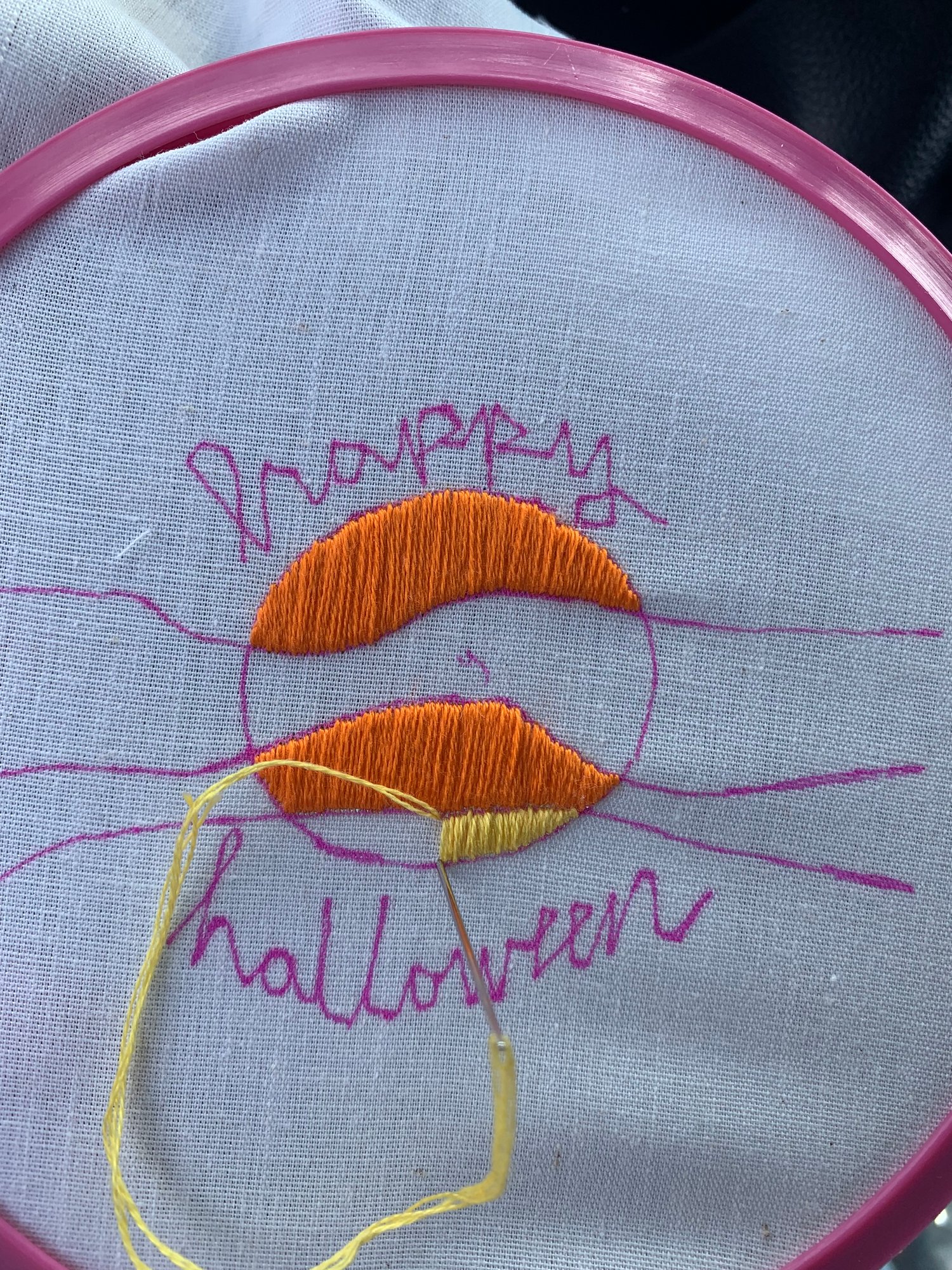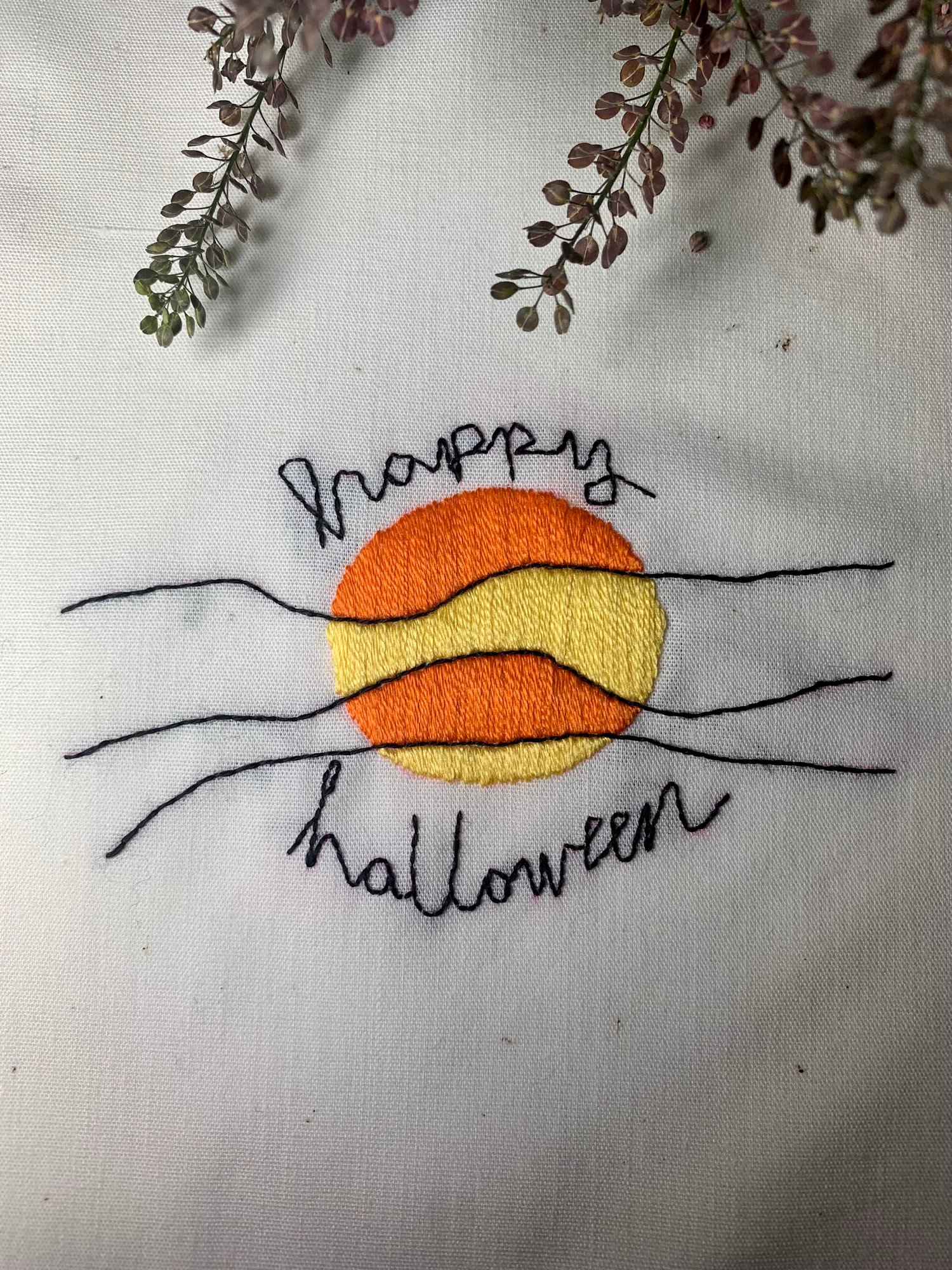 Adorable Pumpkin Moon and "Happy Halloween" Hand Embroidery Pattern - Instant Download PDF with Stitch Guide, Floss Colors, and Instructions