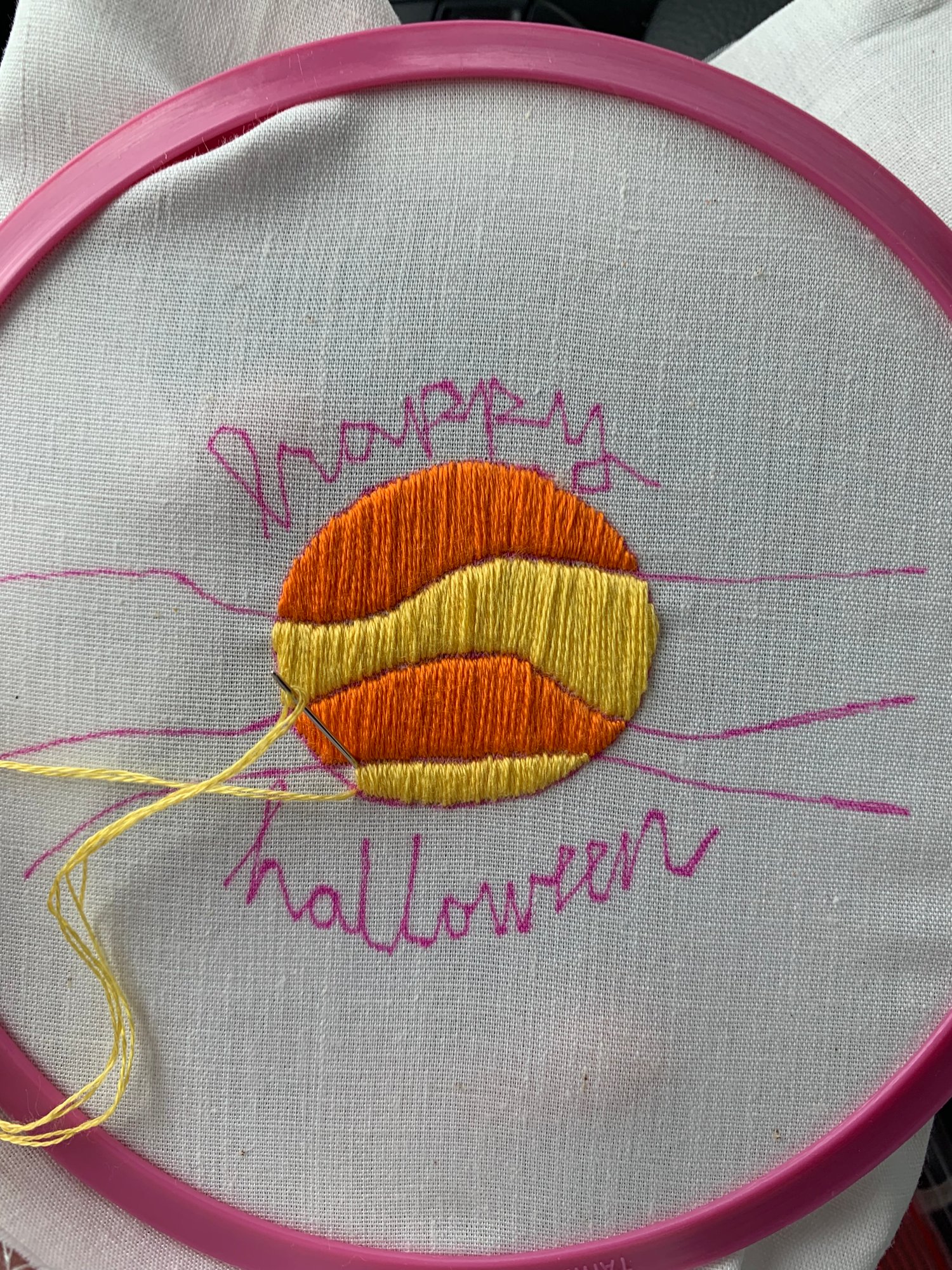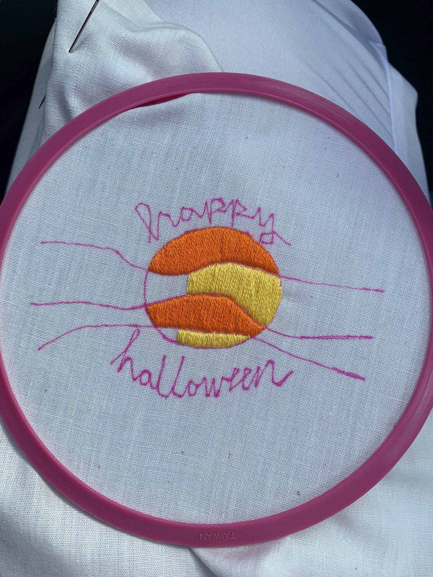 Get your inspiration mooning this Halloween with this fun hand embroidery pattern! The 4x3 inch design features a pumpkin moon with a sweet "Happy Halloween" message below.
