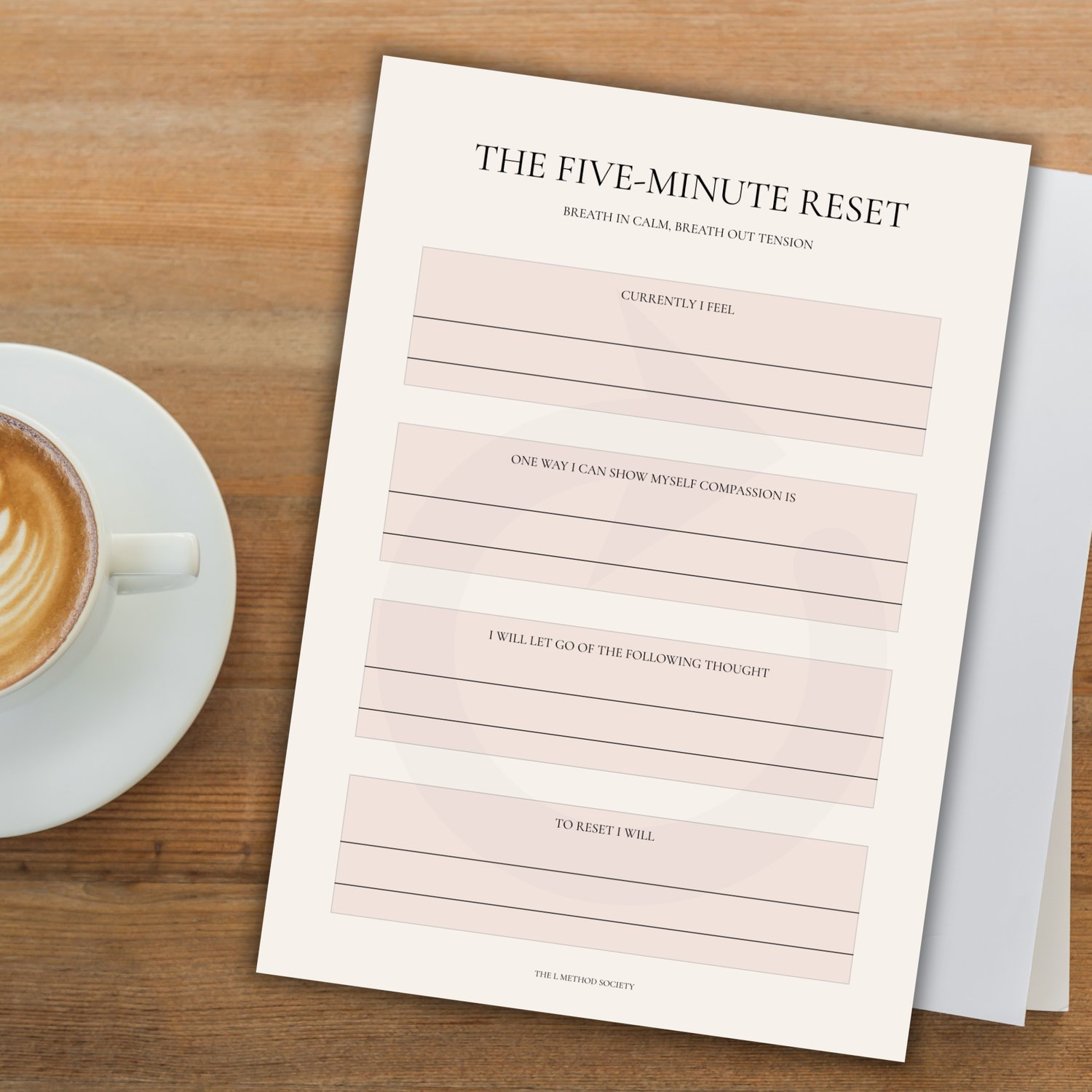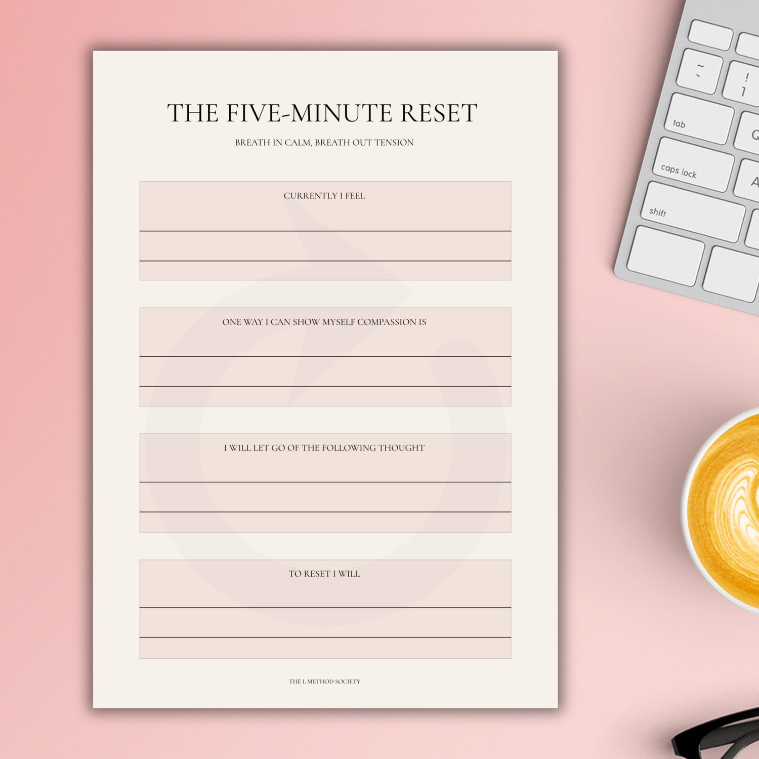 Press pause and realign in just a few minutes with the Five Minute Reset – an editable, printable PDF designed to help you ground yourself, release tension, and reset your focus fast.