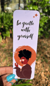 This empowering set of 4 laminated bookmarks blends elegant Black woman illustrations with uplifting affirmations like “Be gentle with yourself” and “Girl’s got goals.” Designed for book lovers who appreciate both beauty and strength, these bookmarks make meaningful gifts and stylish reading companions.