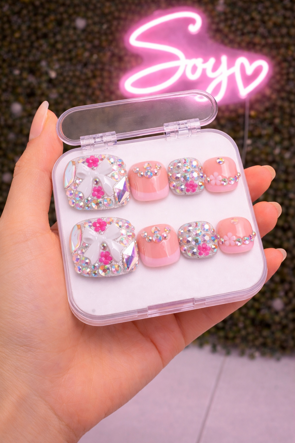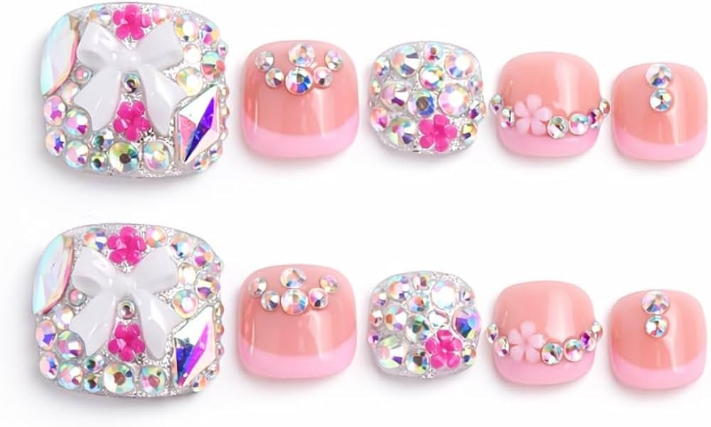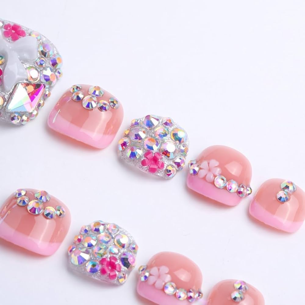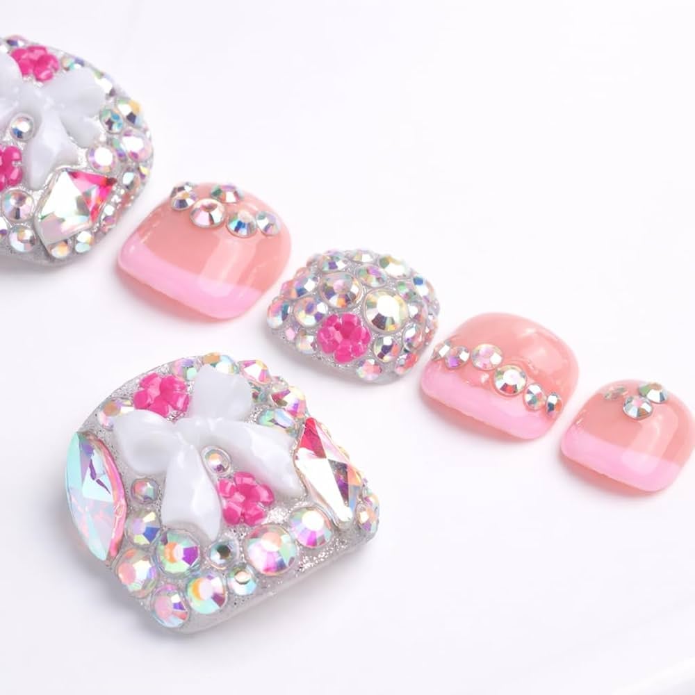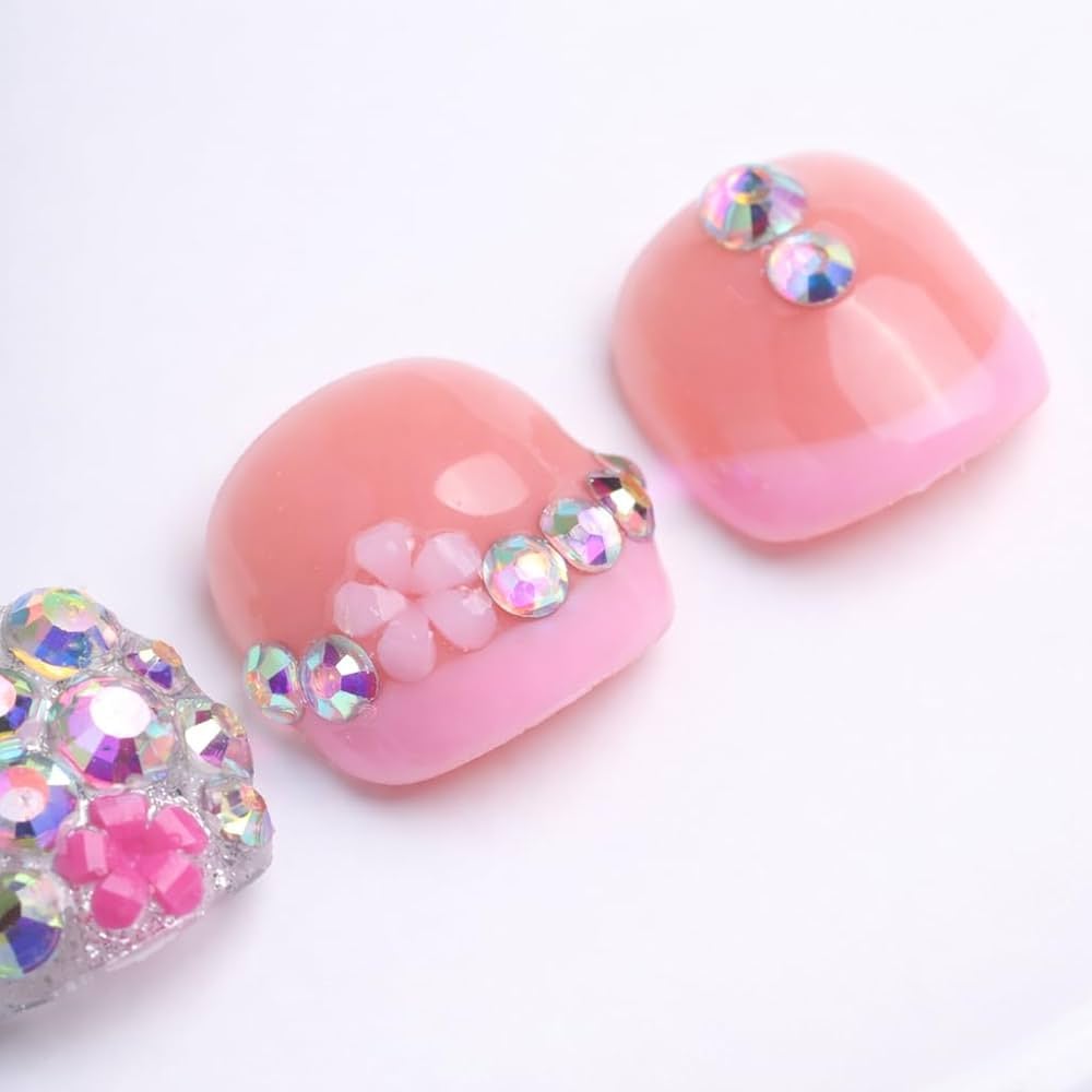 Luxury Pink Rhinestone Toe Nail Set (10pc) | Press-On Toes | Reusable Glam Pedicure