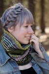 Verso is a fun and light-hearted little cowl that combines two gradient-dyed yarns and plays with color changes and different textures.